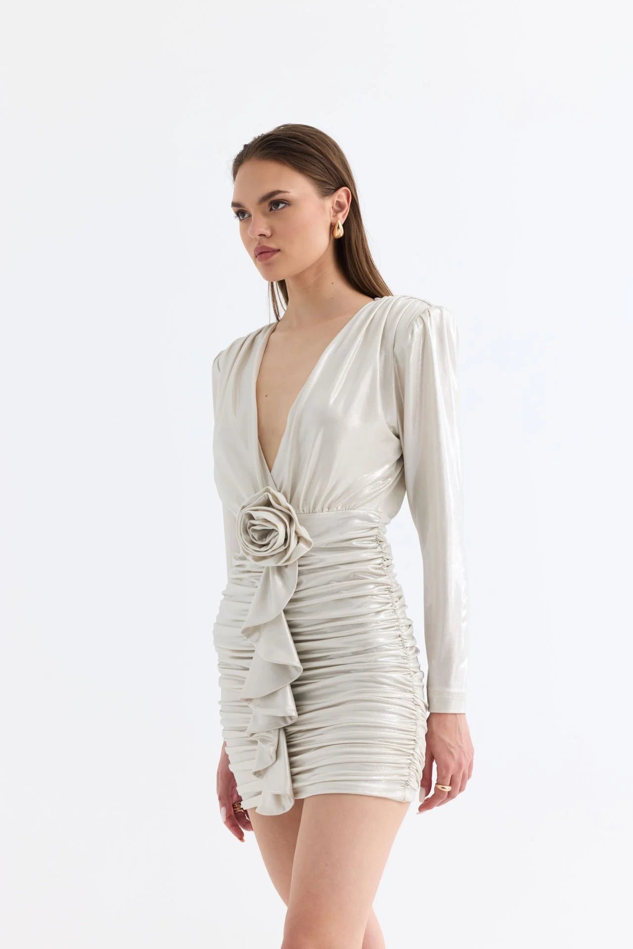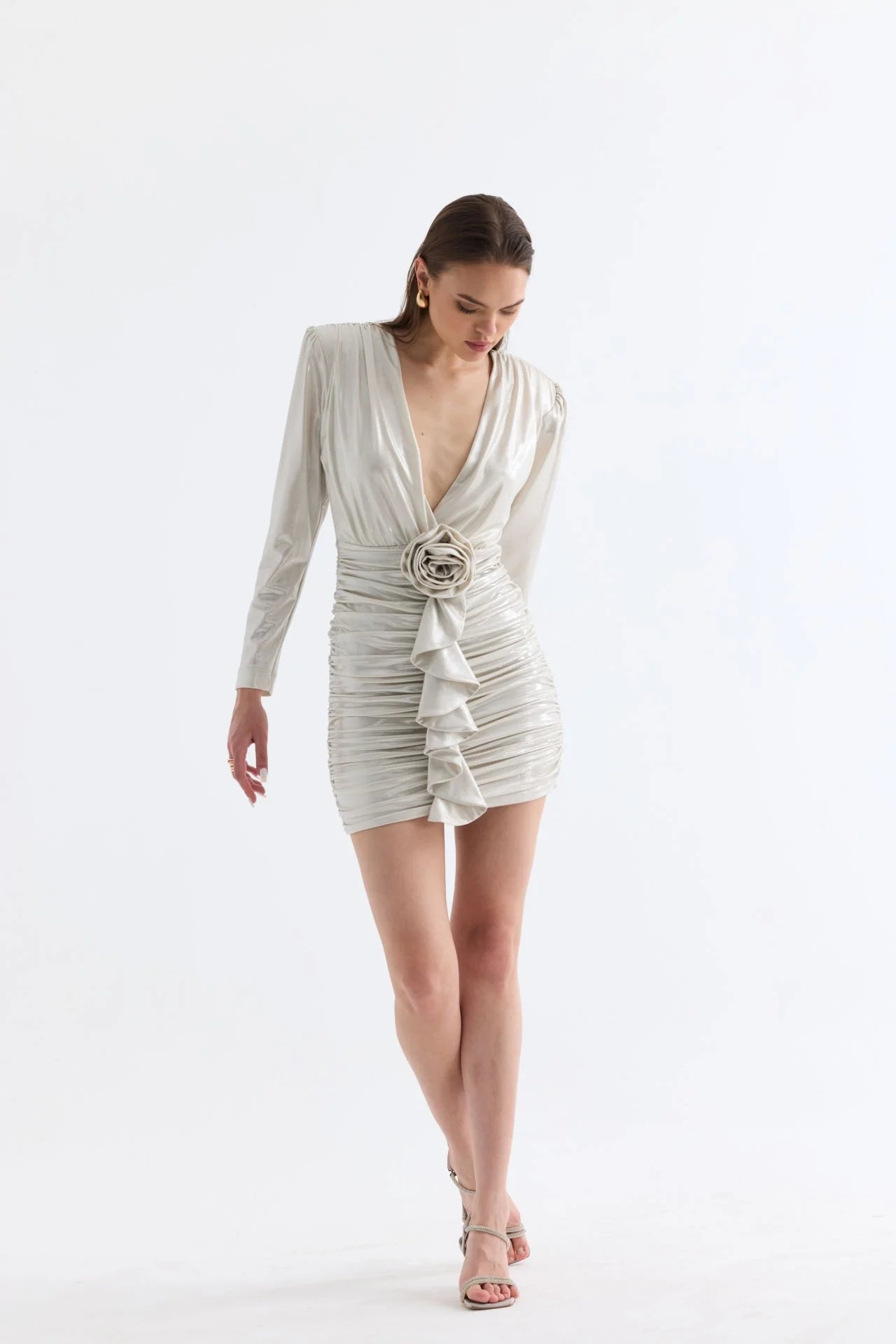 The mini dress with padding and ruffles is perfect for special events, cocktail parties or