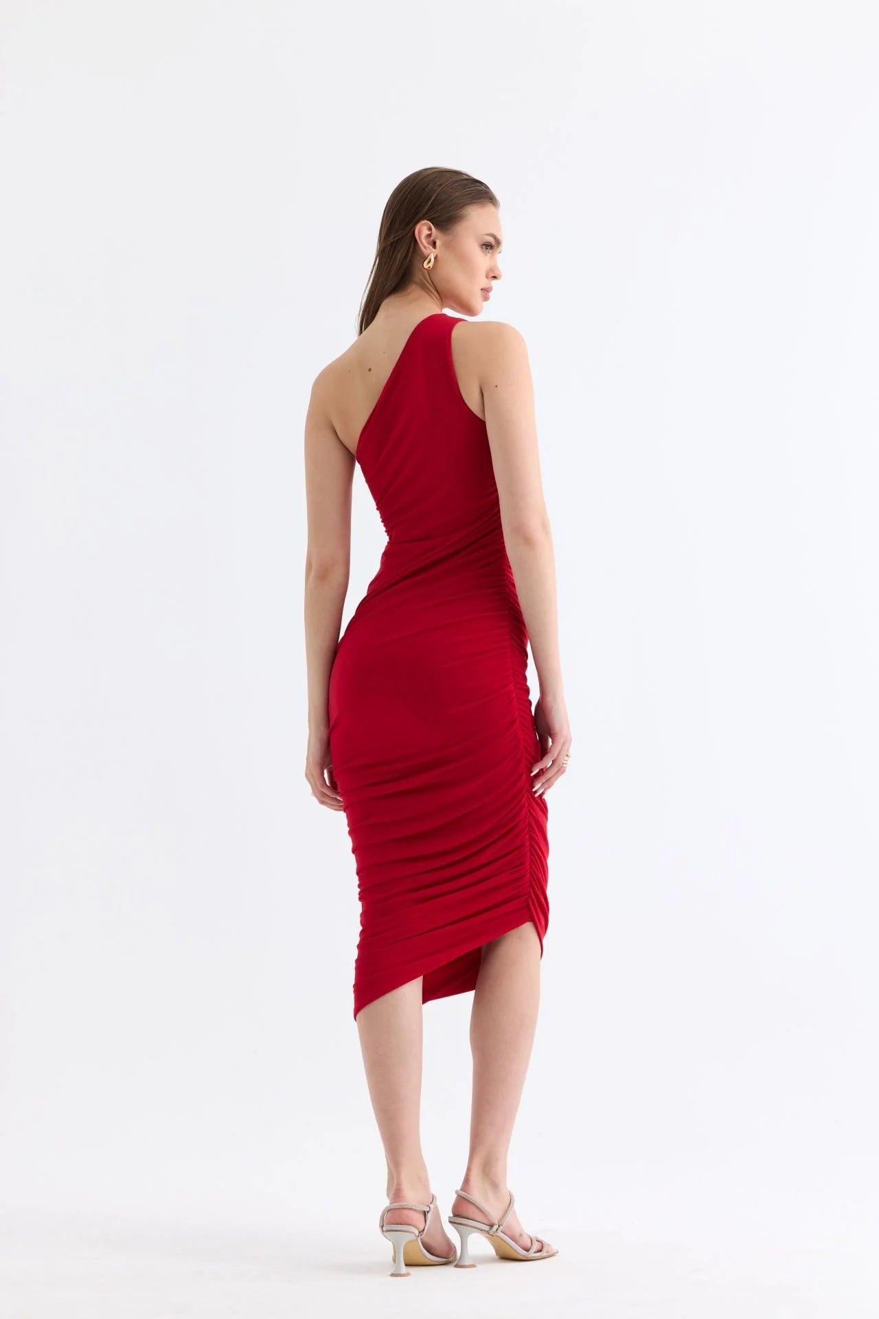 The Raven Tek Omuz Midi ElbiseBu tek omuzlu midi, zarif ve sofistike bir görünüm arayanların tercihi. Elbise şıklığın ve zarafetin...