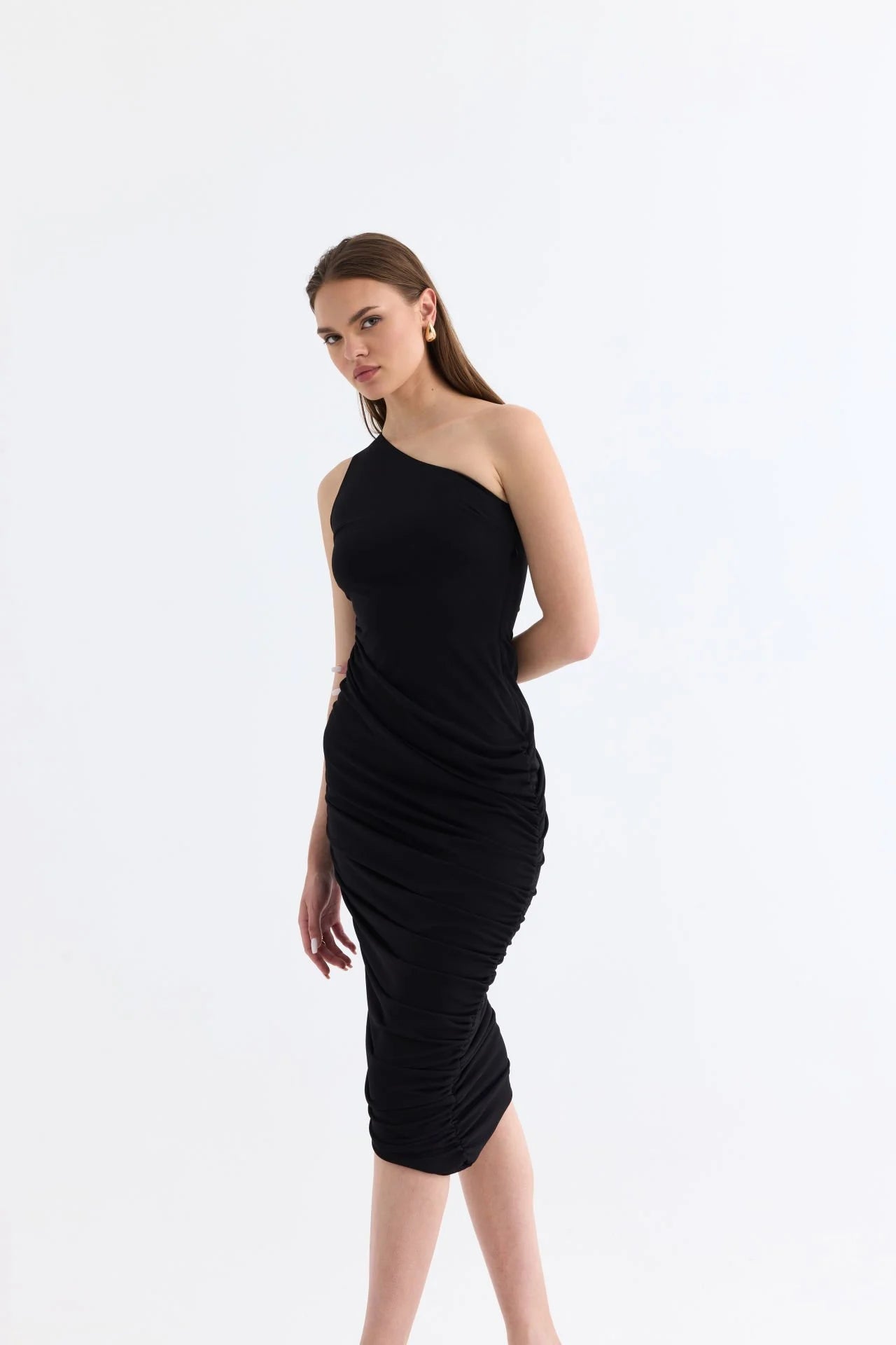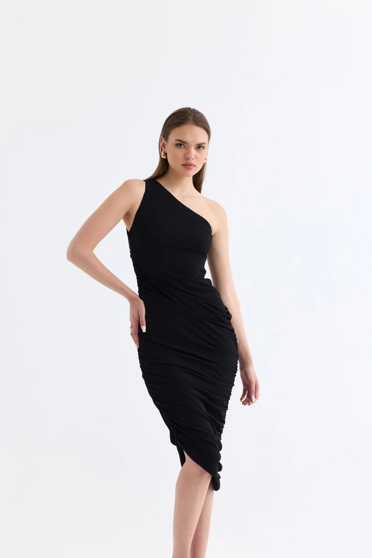 The Raven Tek Omuz Midi ElbiseBu tek omuzlu midi, zarif ve sofistike bir görünüm arayanların tercihi. Elbise şıklığın ve zarafetin...