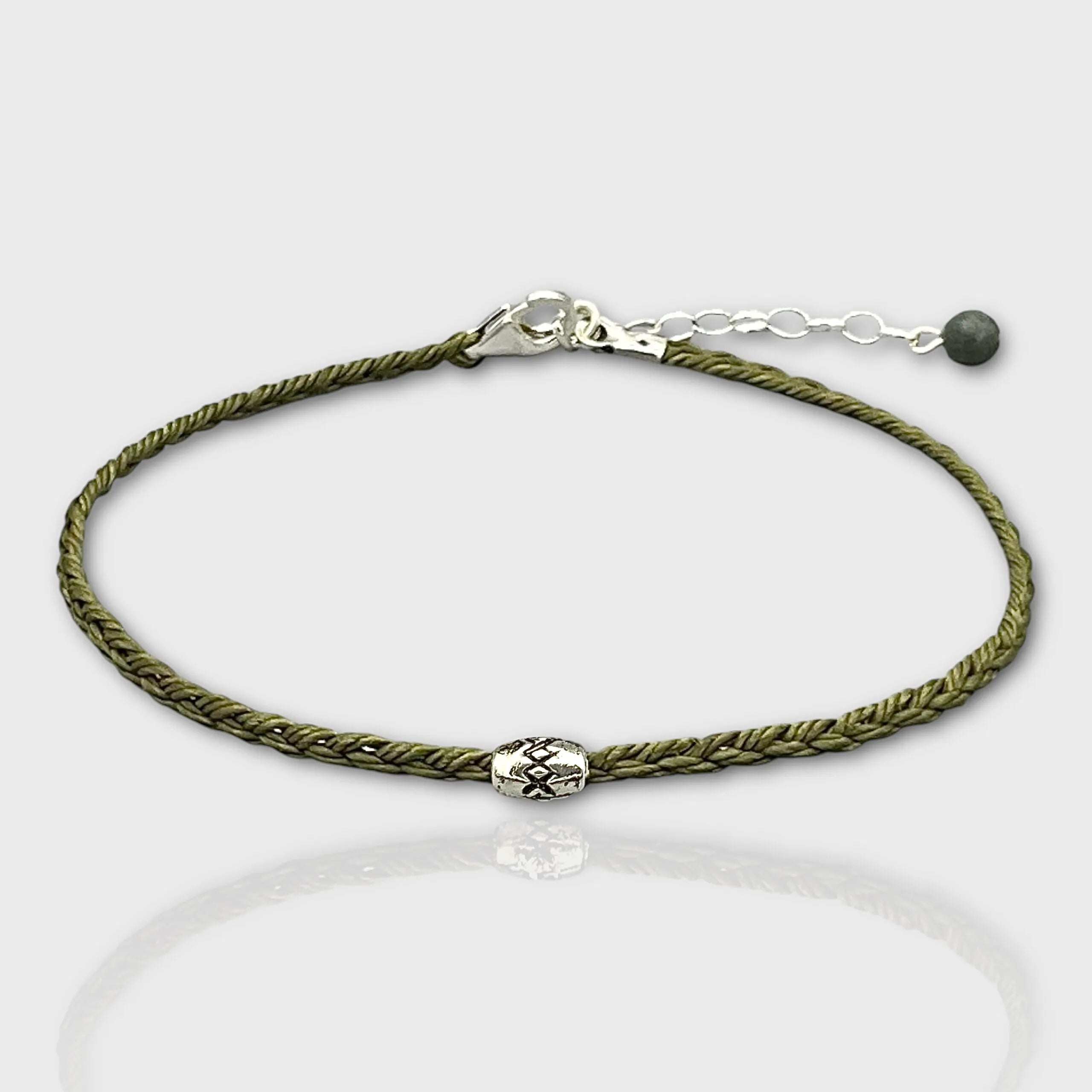Designed using facet cut Jade, 925K silver and 100% cotton thread