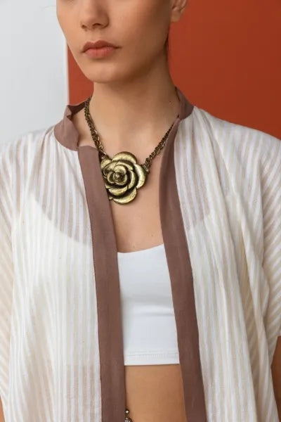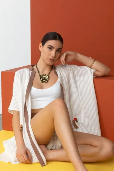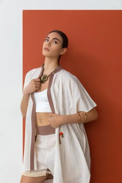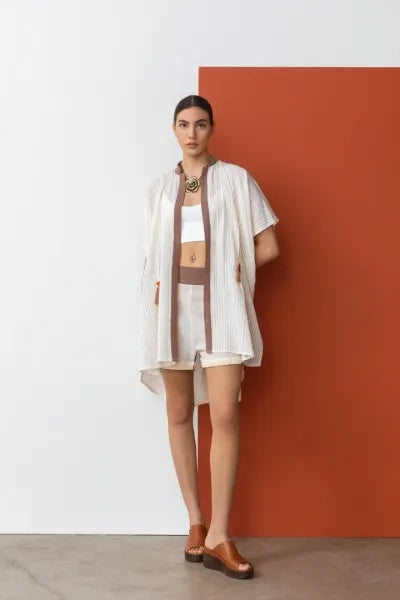 100% cotton natural striped shawl; flowing, loose-fitting kimono