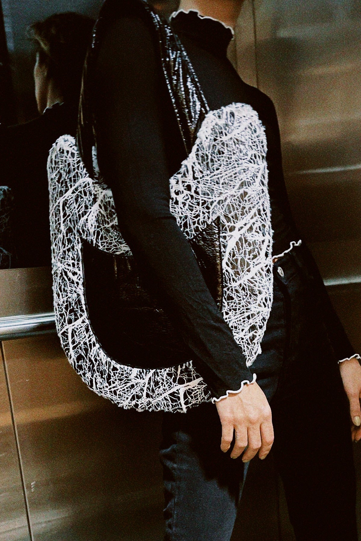 As the only natural satellite of the Earth, the Moon has been orbiting around our wold for billions of years, and we always see the same face of the Moon. This unique piece evokes the dark side of the moon with its black vinyl look, while its foil printed faux fur makes reference to the craters of the moon. To get a good-sized bag for space travellers, we enlarged the Moon Child Aviator Jackets' crescent-shaped pockets. To complete the look, pair your bag with the Moon Child Bucket Hat. Perfect! Now you are ready to magnetize the crowd with these statement winter accessories. Inside the bag, you will see the space, your next desired destination.