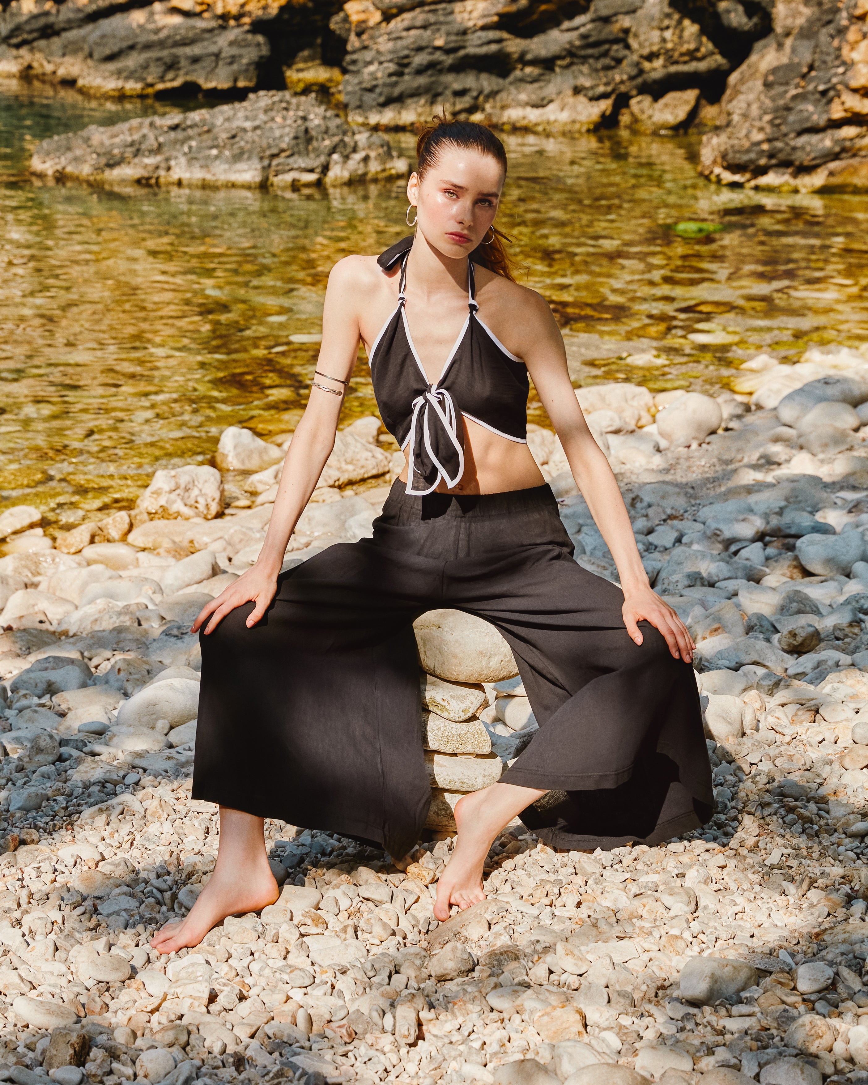 Handarte Los Angeles Siyah Müslin Düğümlü Büstiyer