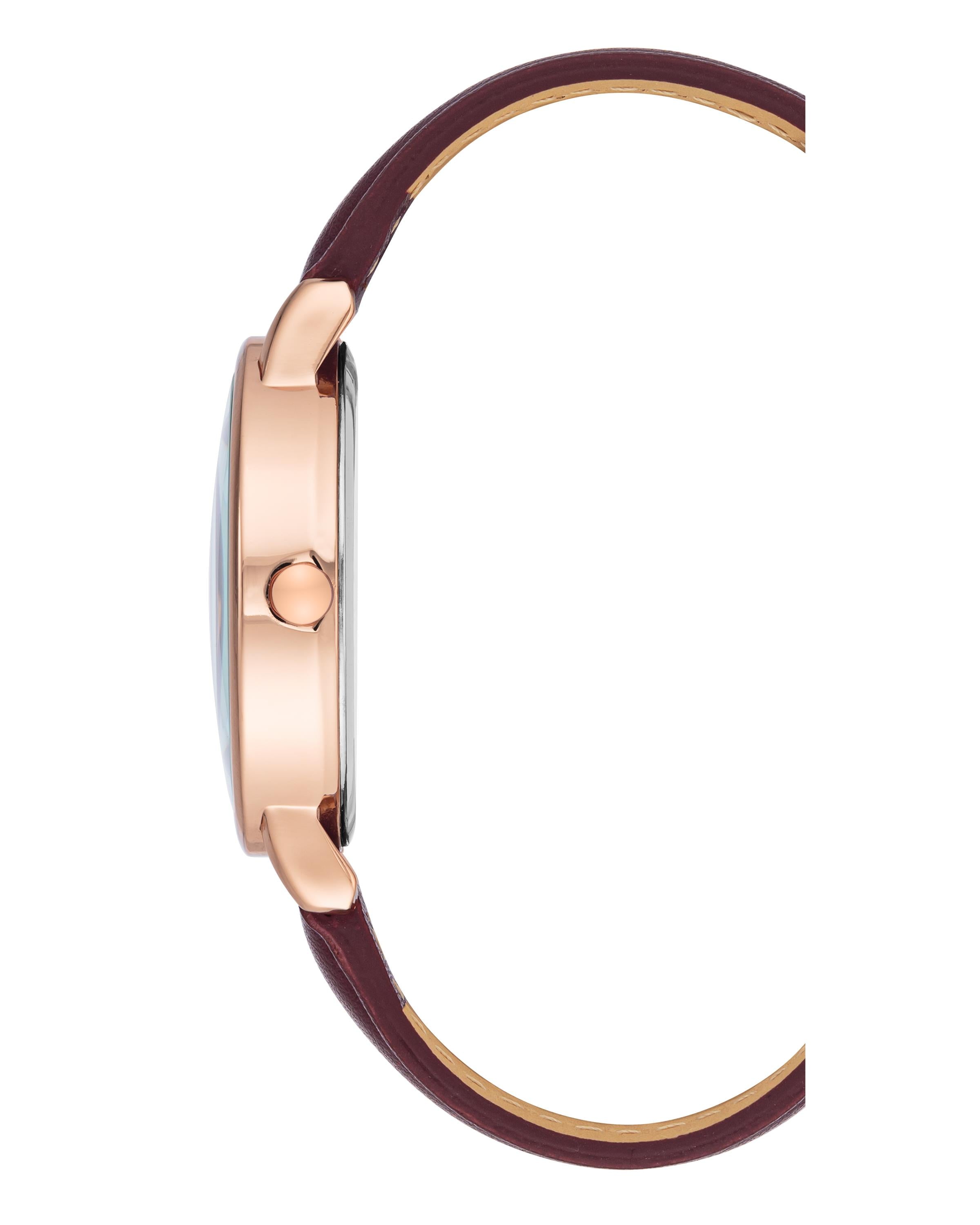 Kasa Çapı: 36 mm - Kasa Şekli: Yuvarlak - Kasa Materyali: Metal - Kasa Rengi: Rose Gold - Kordon Materyali: Deri - Kordon Rengi: Bordo- Kadran Rengi: Bordo - Kadran Işığı: Yok - Taş: Yok - Çalışma Şekli: Analog - Teknolojisi: Quartz - Takvim: Yok - Kronometre: Yok - Alarm: Yok - Cam Özelliği: Mineral - Özellik: Yok - Su Geçirmezlik: 3 ATM - Garanti Süresi: 2 yıl - Cinsiyet: Kadın