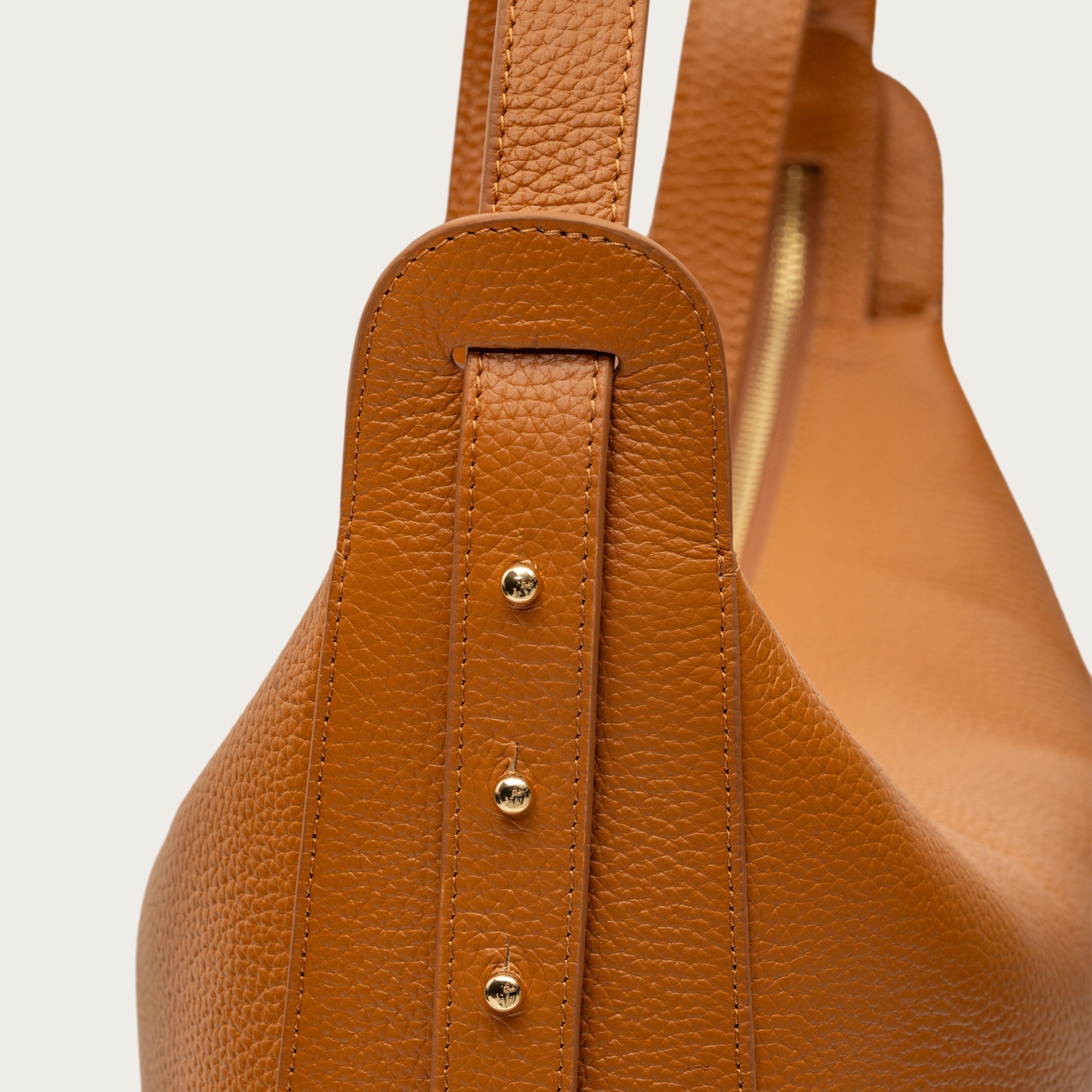 Nova omuz çantası, günlük ihtiyaçlarınız için geniş bir alan sunarken şıklık ve pratikliği bir arada buluşturuyor. Minimalist metal perçin detayları, çantayı elde, omuzda veya çapraz şekilde taşıma imkânı sağlarken, yumuşak deri dokusu konforu artırıyor.
