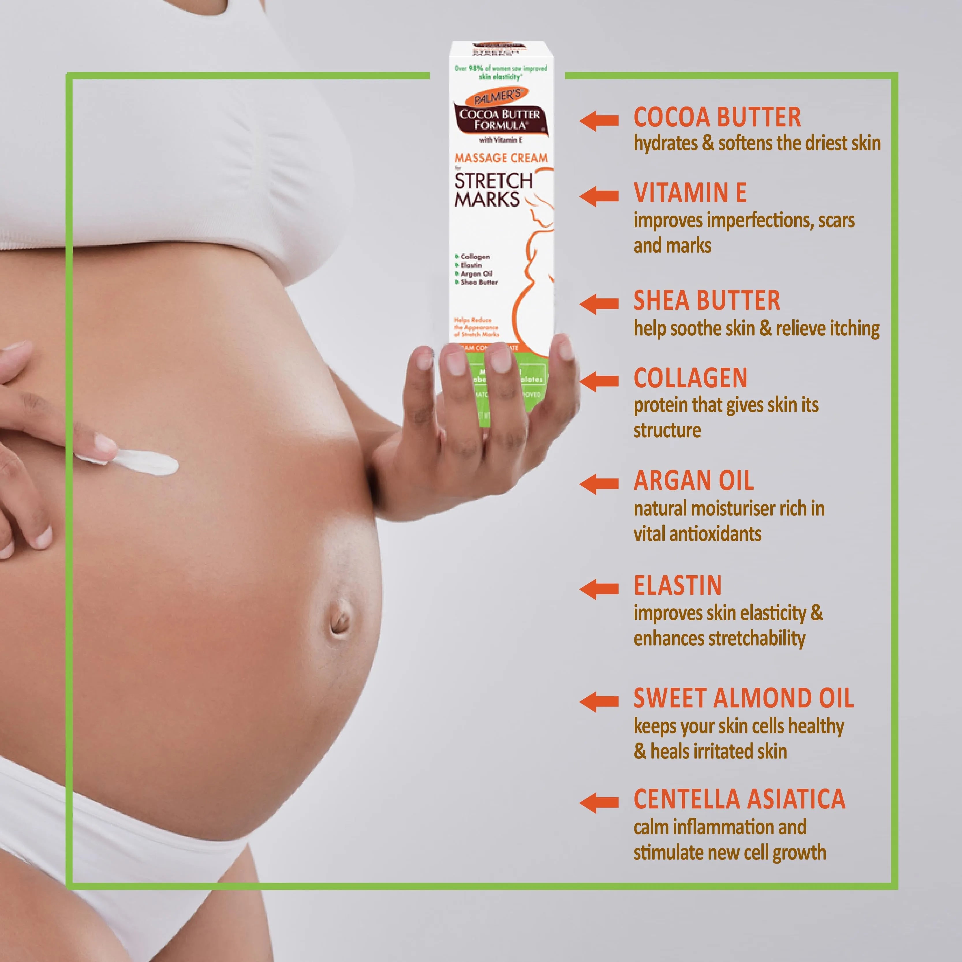 Palmer's Massage Cream For Strech Marks Masaj Kremi 125 grAmerika'nın 1 numaralı çatlak izleri için satılan kremi160 yıldan fazla bir süredir Palmer's isminin temsilcisiKlinik ve Dermatolojik olarak test edildi%100 saf kakao yağı, vitamin E, kollajen ve elastini içerir.Uygun sıkma tüpüKlinik olarak kanıtlanmış sonuçlarCildinizi doğal elastikiyetini ve nemini korumak için yağlar.Yağlılık hissi bırakmadan, gergin bir ciltle ilgili kuruluğu giderir.Çatlak izlerini azaltır.* Cildin elaksiyetini arttırdığı klinik olarak kanıtlanmıştır. Bu da çatlakları önlemeye ve azaltmaya yardımcı olur.Bel, göğüs, karın ve kalça bölgelerinde güvenle kullanılabilir.