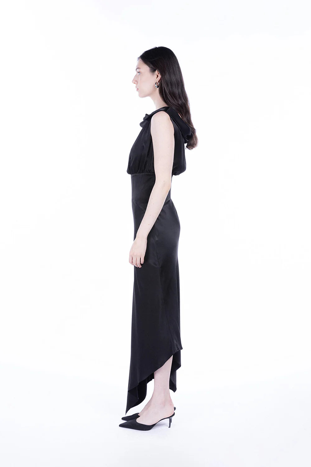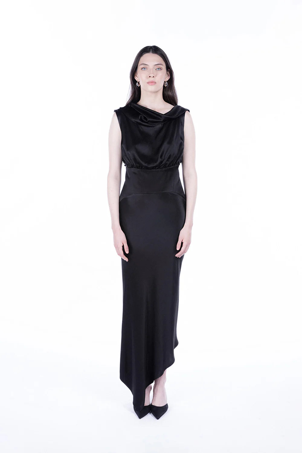 Standing out with its modern lines, this asymmetrical satin dress perfectly hugs your body with its folded boat neckline detail and underwires at the waist. With its fluid satin fabric, you will not compromise your elegance while moving freely.