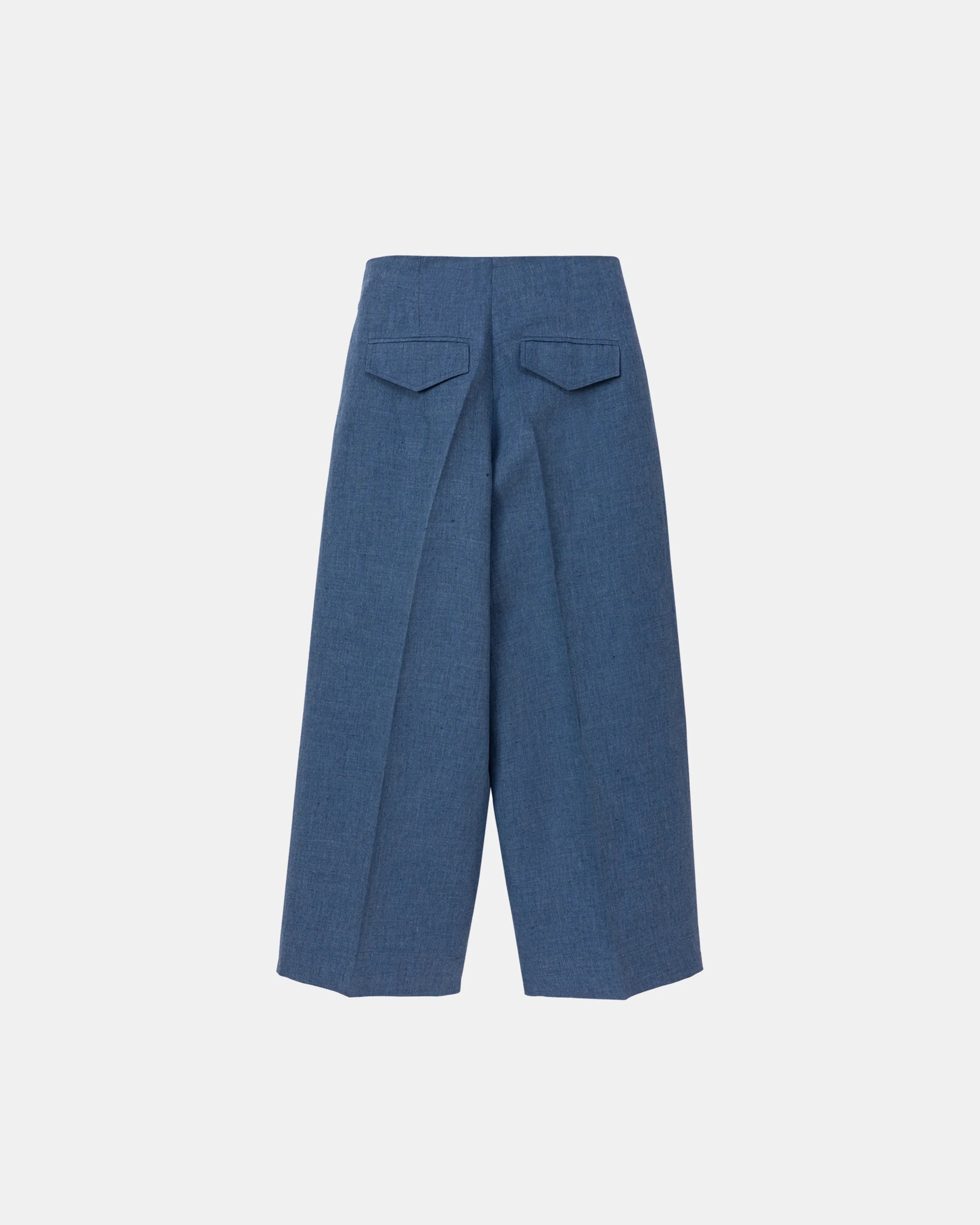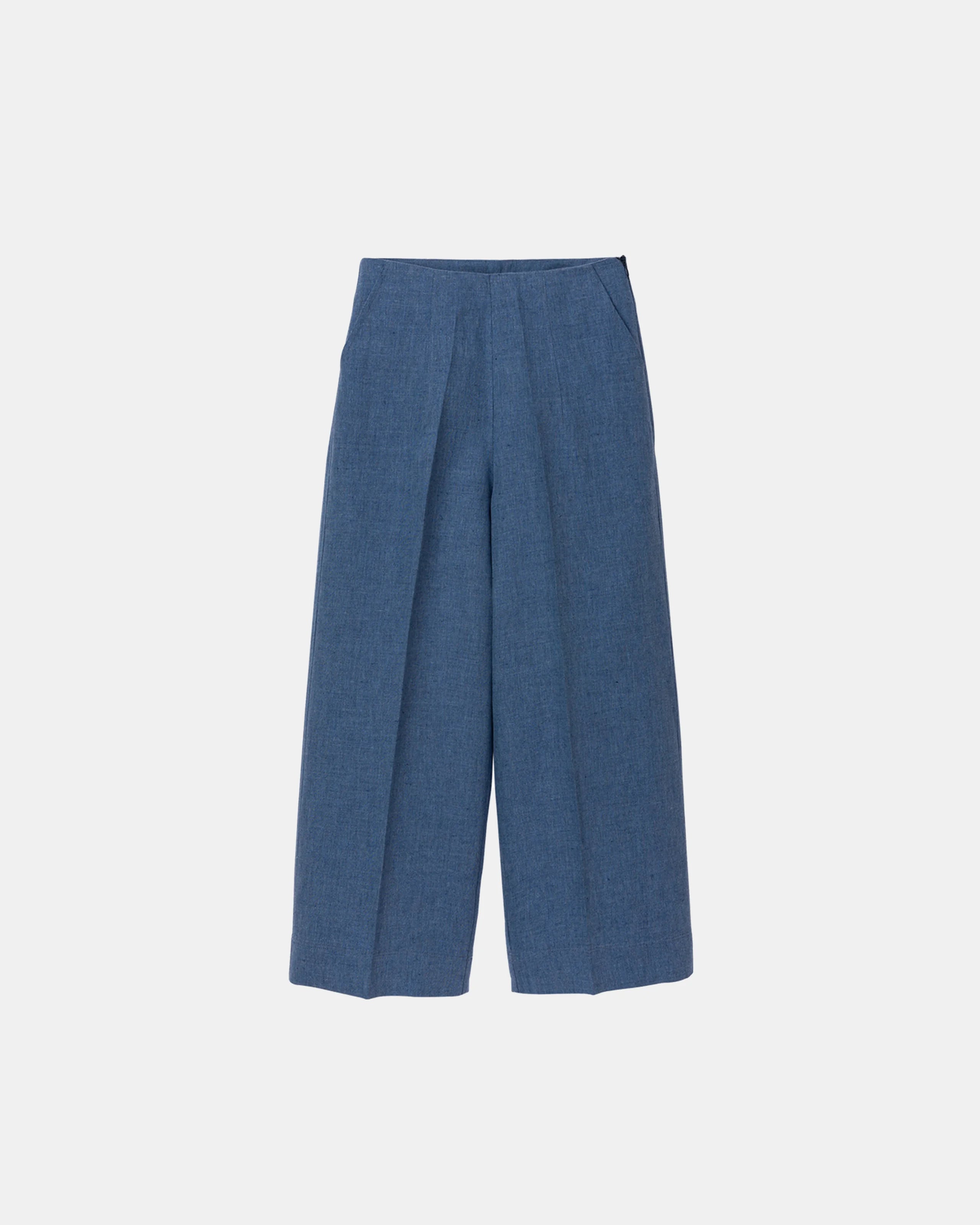 Yüksek kaliteli keten ve pamuk karışımından üretilen bu orta bel pantolon, geniş paçaları ve ayak bileği hizasındaki etek uçlarıyla şıklığı ve rahatlığı bir arada sunuyor. Yan dikiş cepleri ve yan fermuar detayı, fonksiyonel ve zarif bir görünüm sağlıyor. Hem günlük kullanım hem de özel davetlerde tercih edebileceğiniz bu pantolon, dolabınızın vazgeçilmezi olacak.