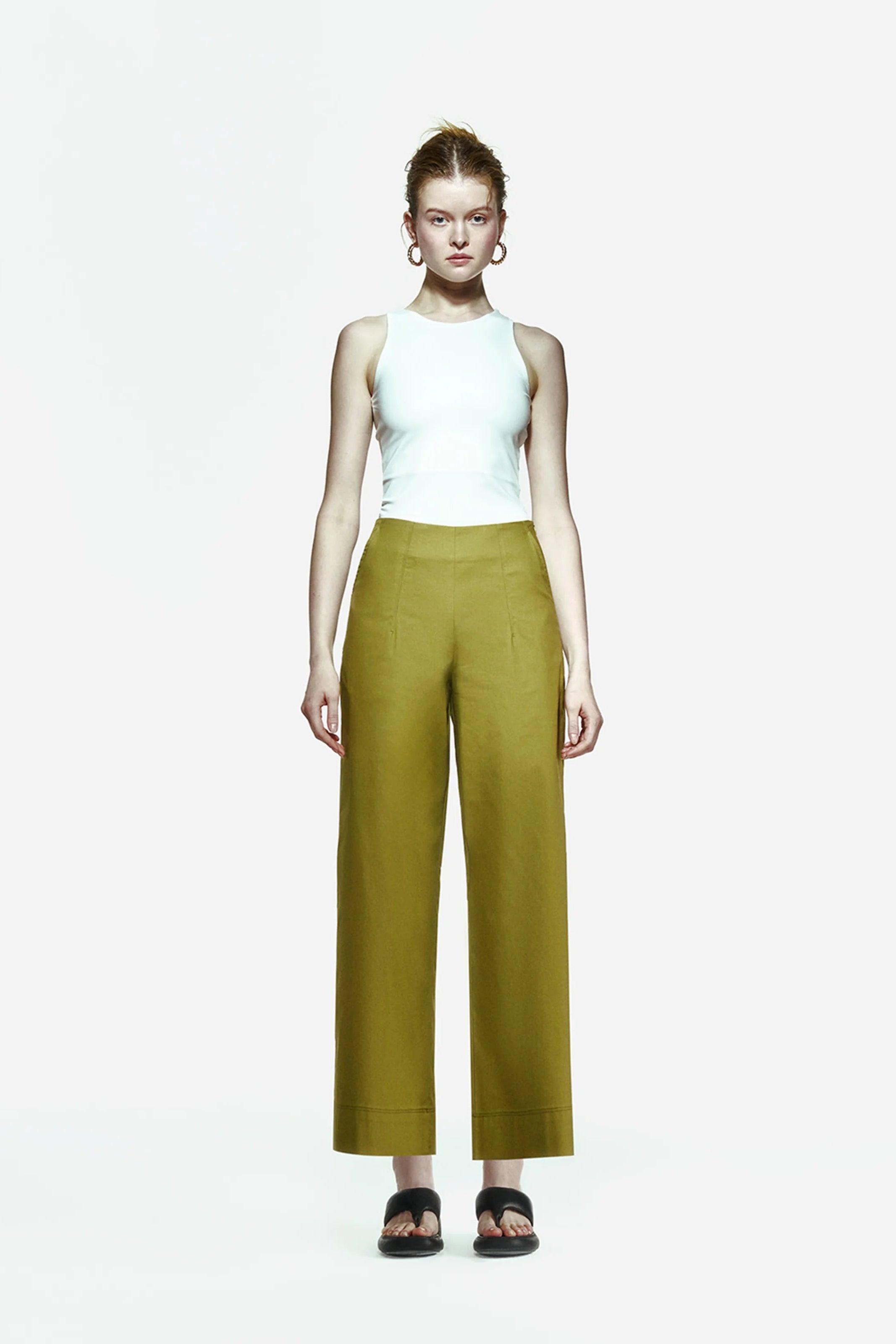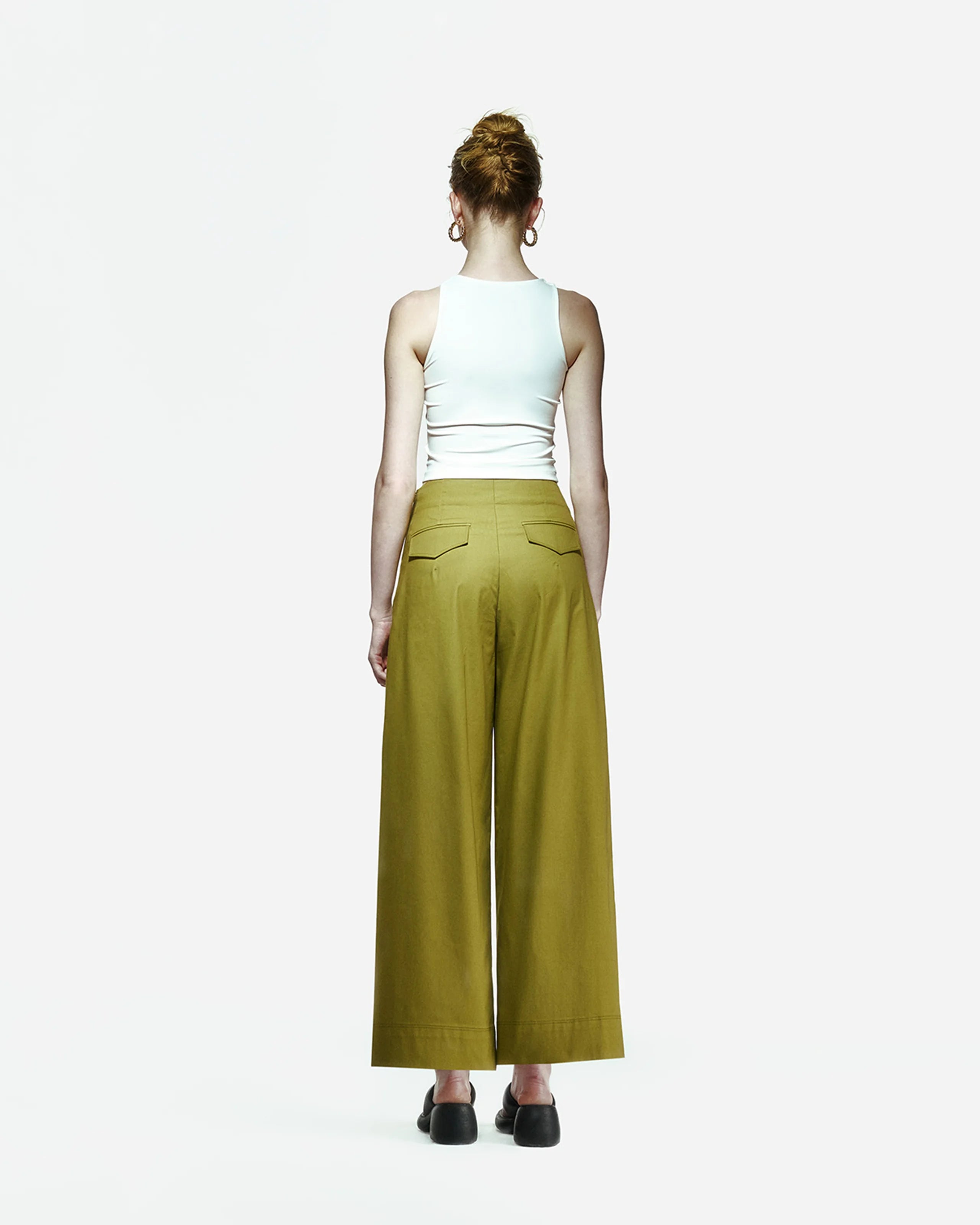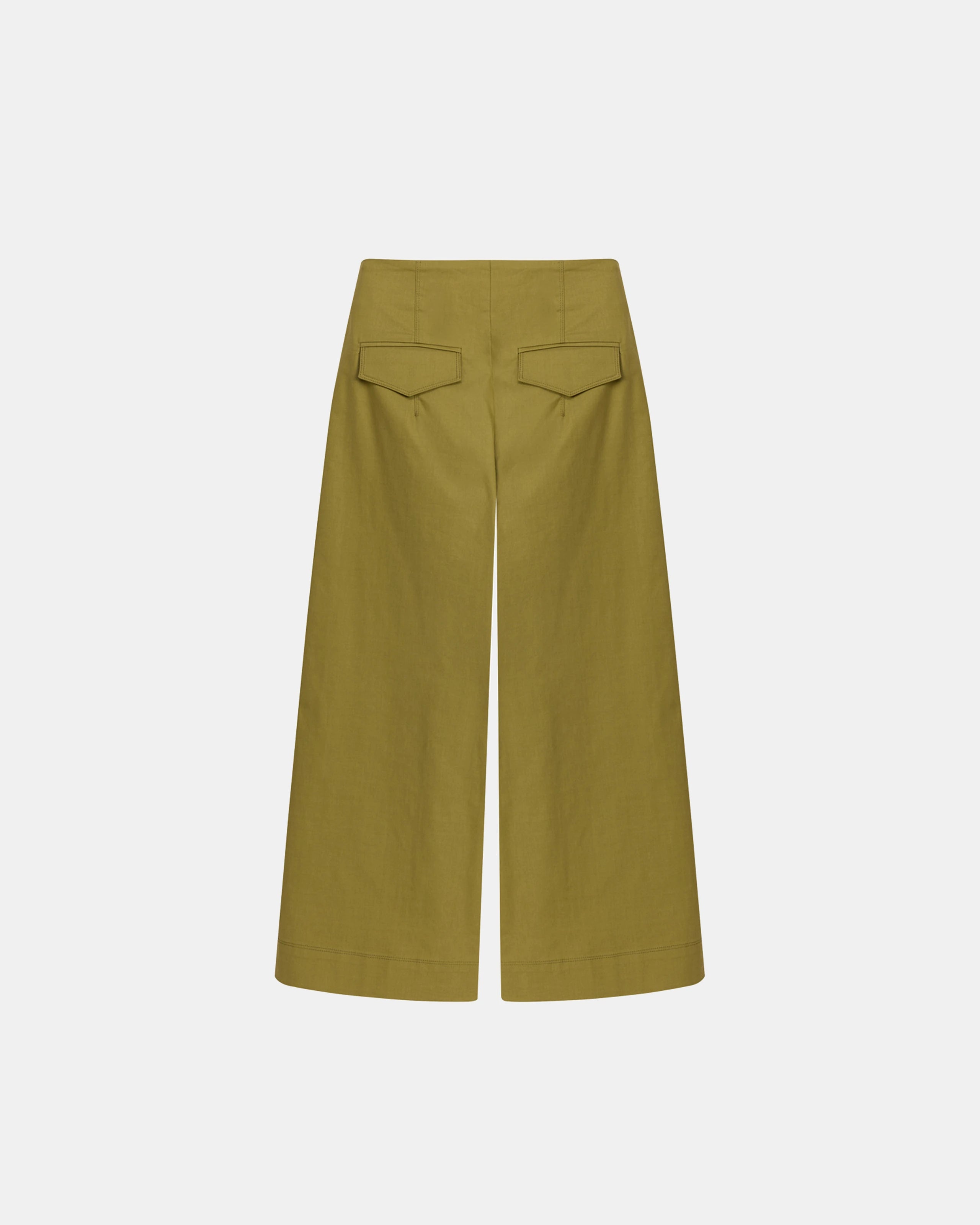 Yüksek kaliteli keten ve pamuk karışımından üretilen bu orta bel pantolon, geniş paça tasarımı ve ayak bileği hizasında etek uçlarıyla şıklığı ve rahatlığı bir arada sunuyor. Yan dikiş cepleri ve yan fermuar detayı, fonksiyonel kullanım sağlarken zarif bir görünüm oluşturur. Hem günlük kullanım hem de özel davetlerde rahatlıkla tercih edilebilecek bir parça.