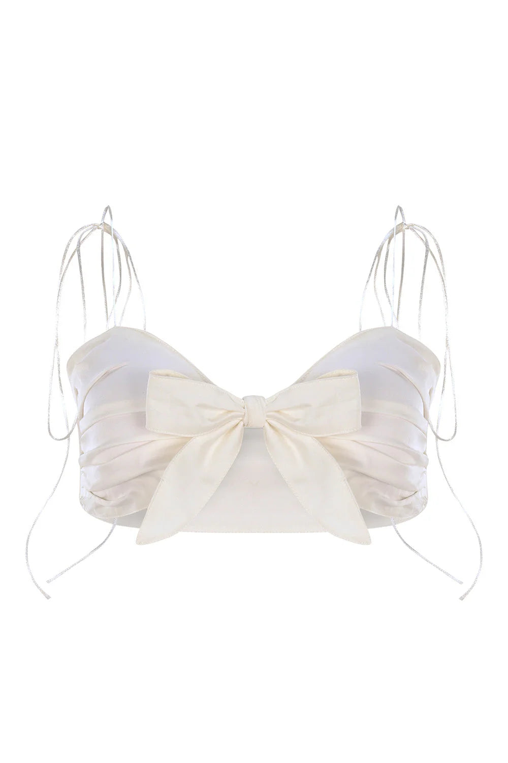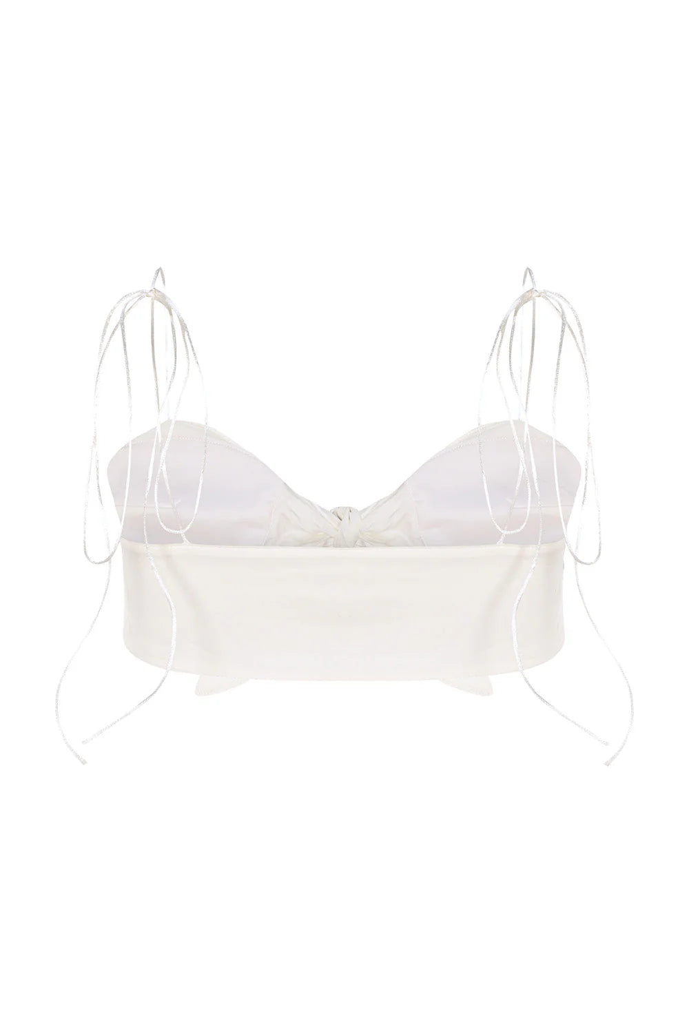 LARA off-white drop top! This top, which is tied at the front and shoulders, stands out with its off-white cotton satin fabric blend. LARA drop, which you can choose in summer with its comfortable and light structure, offers both elegance and comfort together.