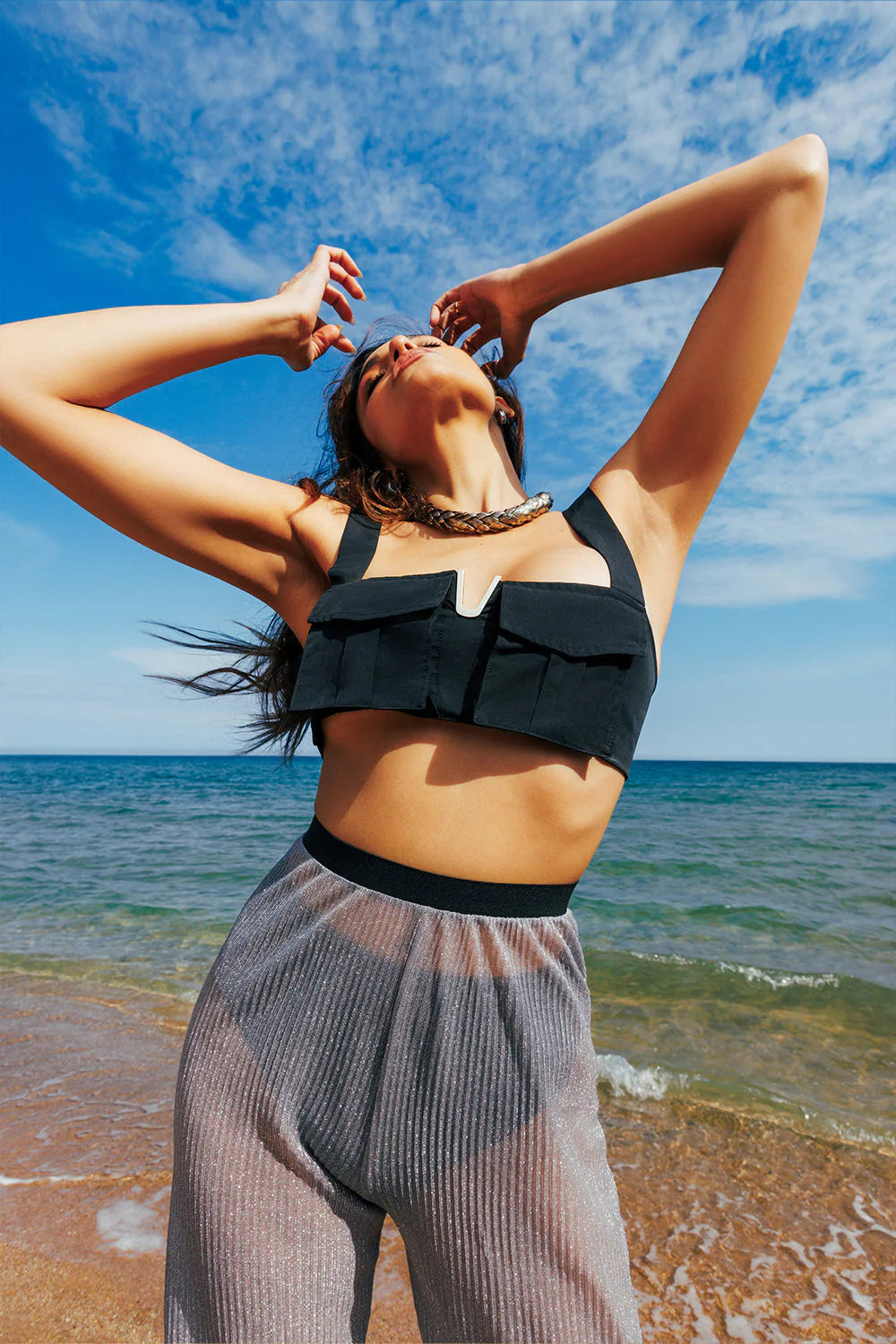 SOLE tulle women's trousers with elastic waistband and silver parklak lightweight tulle material allows you to capture a stylish, comfortable daily style on the beach and summer days. It offers a comfortable wearing experience thanks to its high quality tulle fabric.