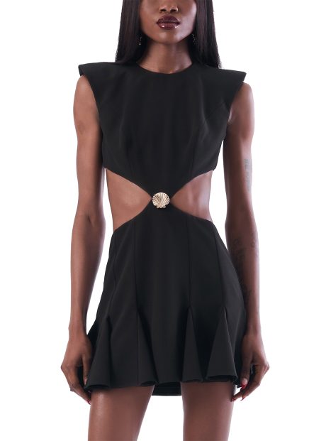 Black Open-Waist Mini Dress with Pleated Skirt Detail