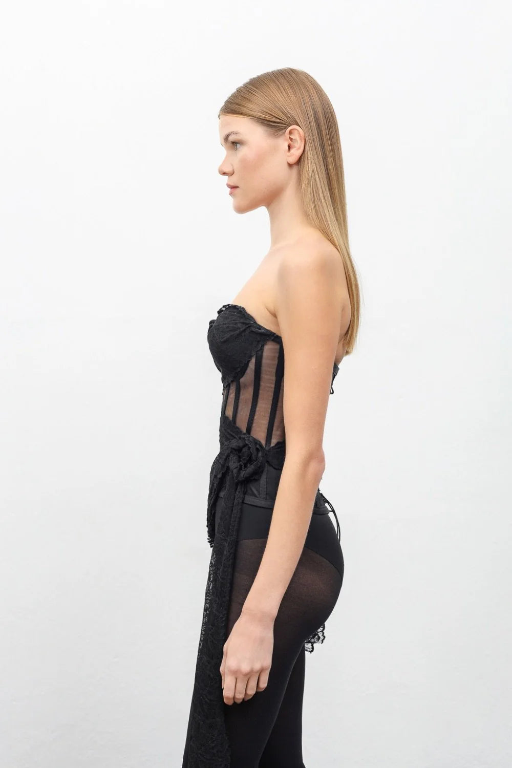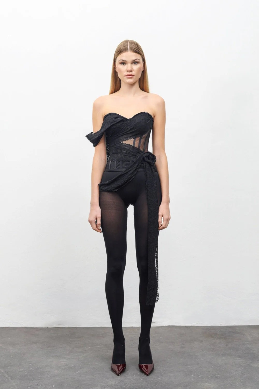 Lace Detailed, Draped, Special design, Adjustable at the back, Corset.