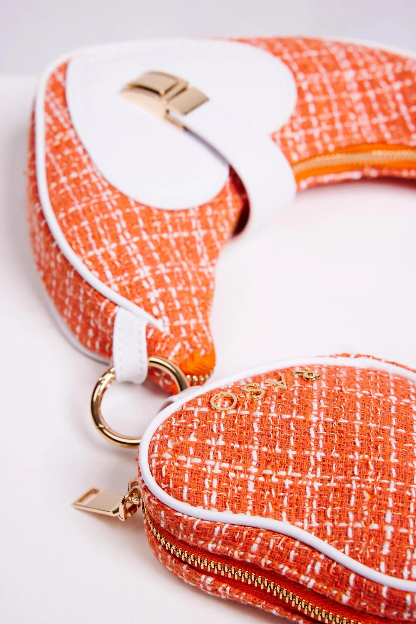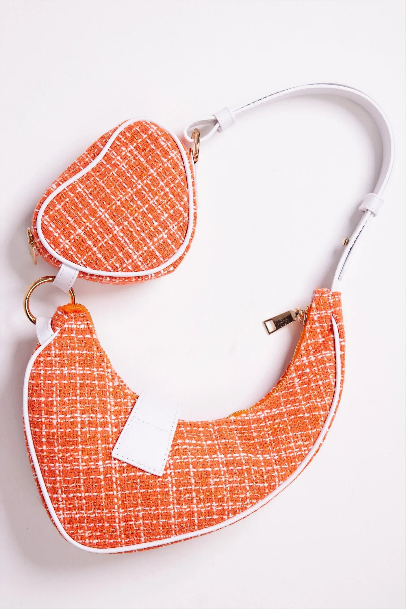 Yumuşak kalp formlarının farklı boyutlarda bir araya gelmesiyle oluşan tasarım, alışılmışın dışında bir görüntü sergiliyor. Kumaşların ve vegan derilerin birleşimiyle her stilde var olmayı hedefliyor. Düzensizlikten beslenen bu tasarım, ayarlanabilir askısı ile kolda, çaprazda ya da belde kullanıma uygundur.