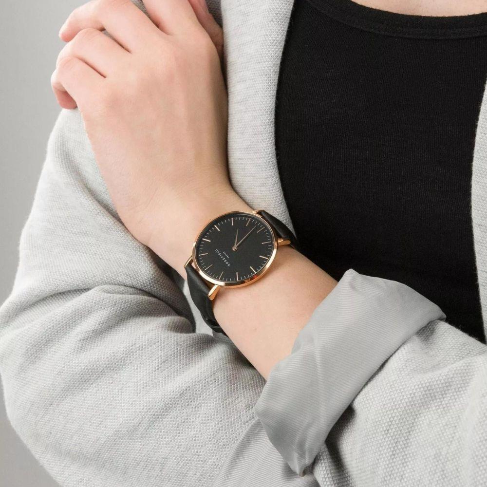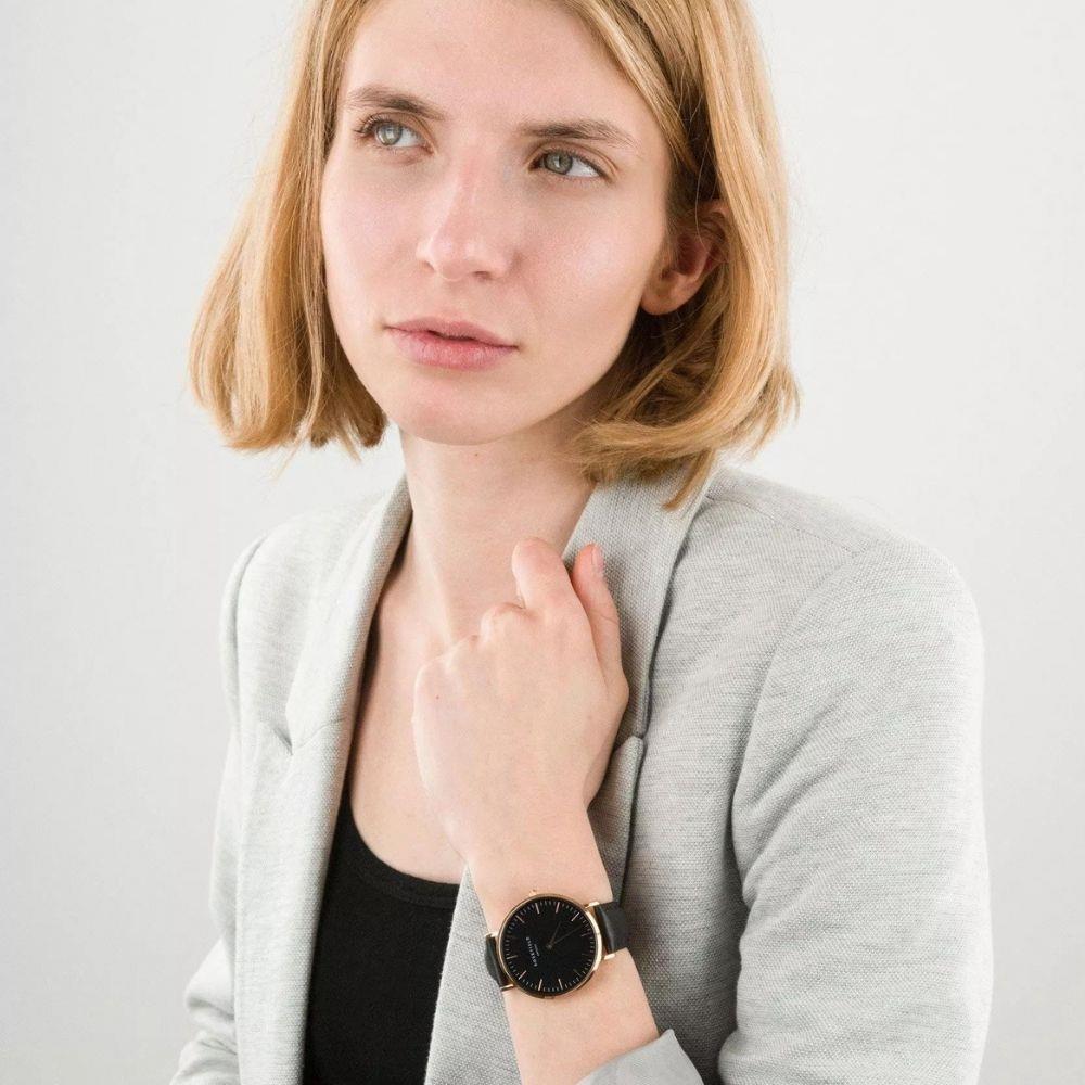 Kasa Çapı: 38 mm - Kasa Şekli: Yuvarlak - Kasa Materyali: Metal - Kasa Rengi: Rose Gold - Kordon Materyali: Deri - Kordon Rengi: Siyah- Kadran Rengi: Siyah - Kadran Işığı: Yok - Taş: Yok - Çalışma Şekli: Analog - Teknolojisi: Quartz - Takvim: Yok - Kronometre: Yok - Alarm: Yok - Cam Özelliği: Mineral - Özellik: Yok - Su Geçirmezlik: 3 ATM - Garanti Süresi: 2 Yıl - Cinsiyet: Kadın