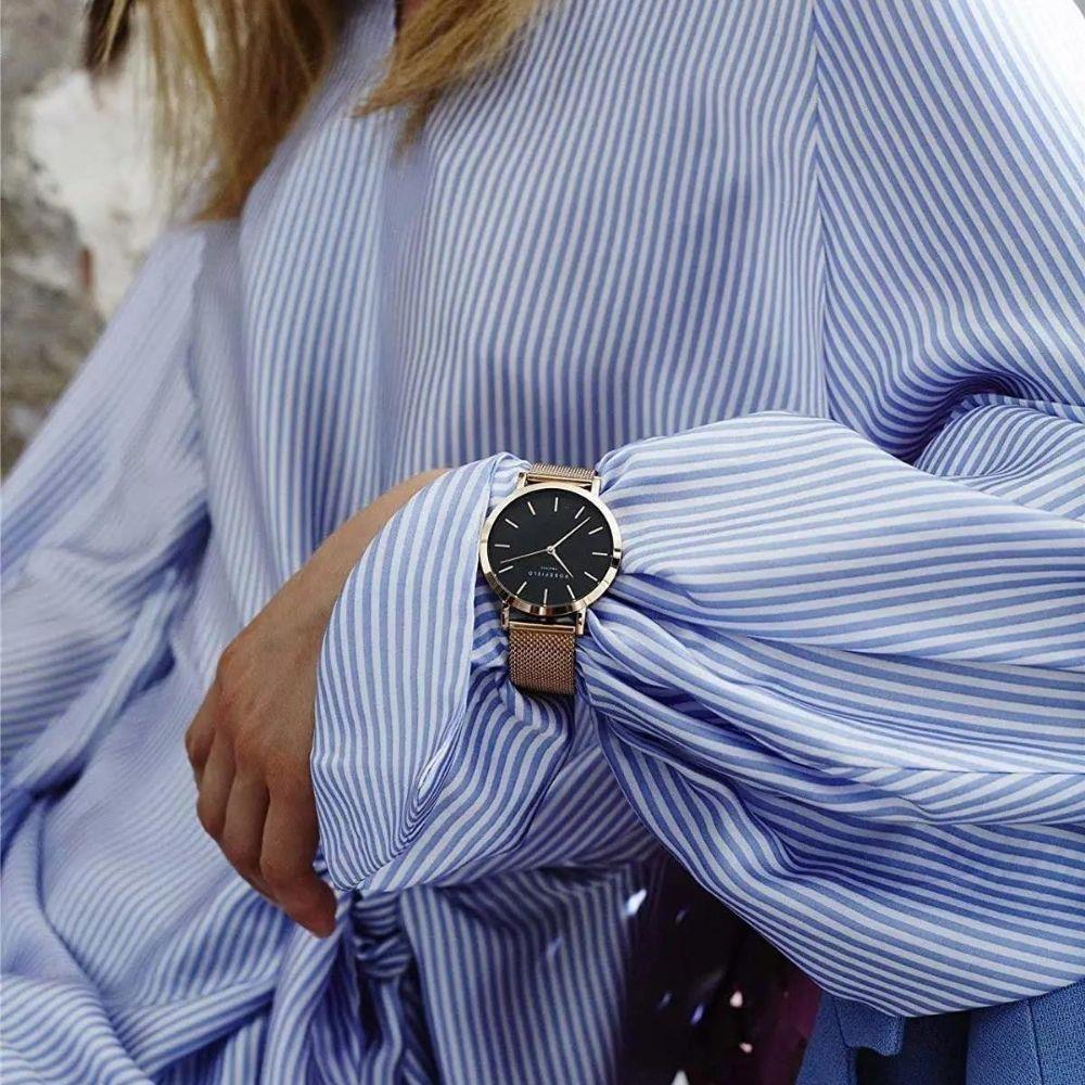 Kasa Çapı: 38 mm - Kasa Şekli: Yuvarlak - Kasa Materyali: Metal - Kasa Rengi: Rose Gold - Kordon Materyali: Hasır Çelik - Kordon Rengi: Rose Gold- Kadran Rengi: Siyah - Kadran Işığı: Yok - Taş: Yok - Çalışma Şekli: Analog - Teknolojisi: Quartz - Takvim: Yok - Kronometre: Yok - Alarm: Yok - Cam Özelliği: Mineral - Özellik: Yok - Su Geçirmezlik: 3 ATM - Garanti Süresi: 2 Yıl - Cinsiyet: Kadın