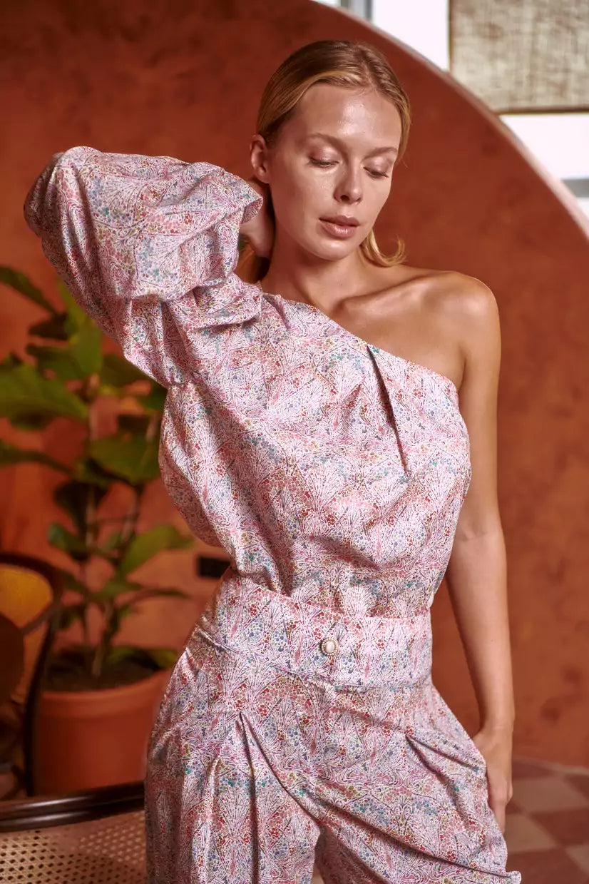 Antoinette Tek Omuz, geleneksel Anadolu mirasını canlı renklerle birleştiren ultra yumuşak ama dayanıklı özel tasarım, ipeksi dokunuşlu pamuklu poplin kumaşta çarpıcı bir estetik sağlayan hacimli bir ifade kılıfıyla tasarlanmıştır.