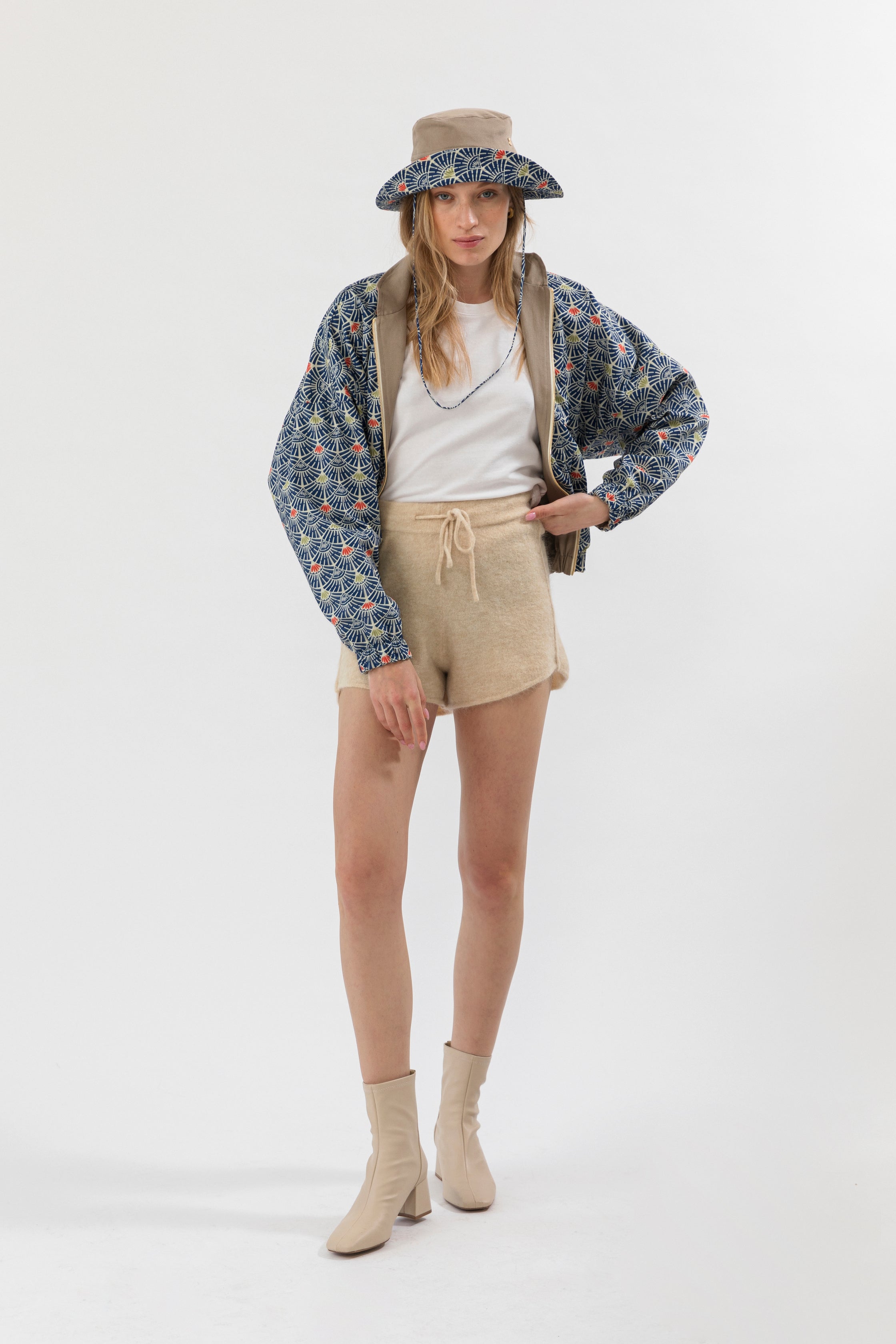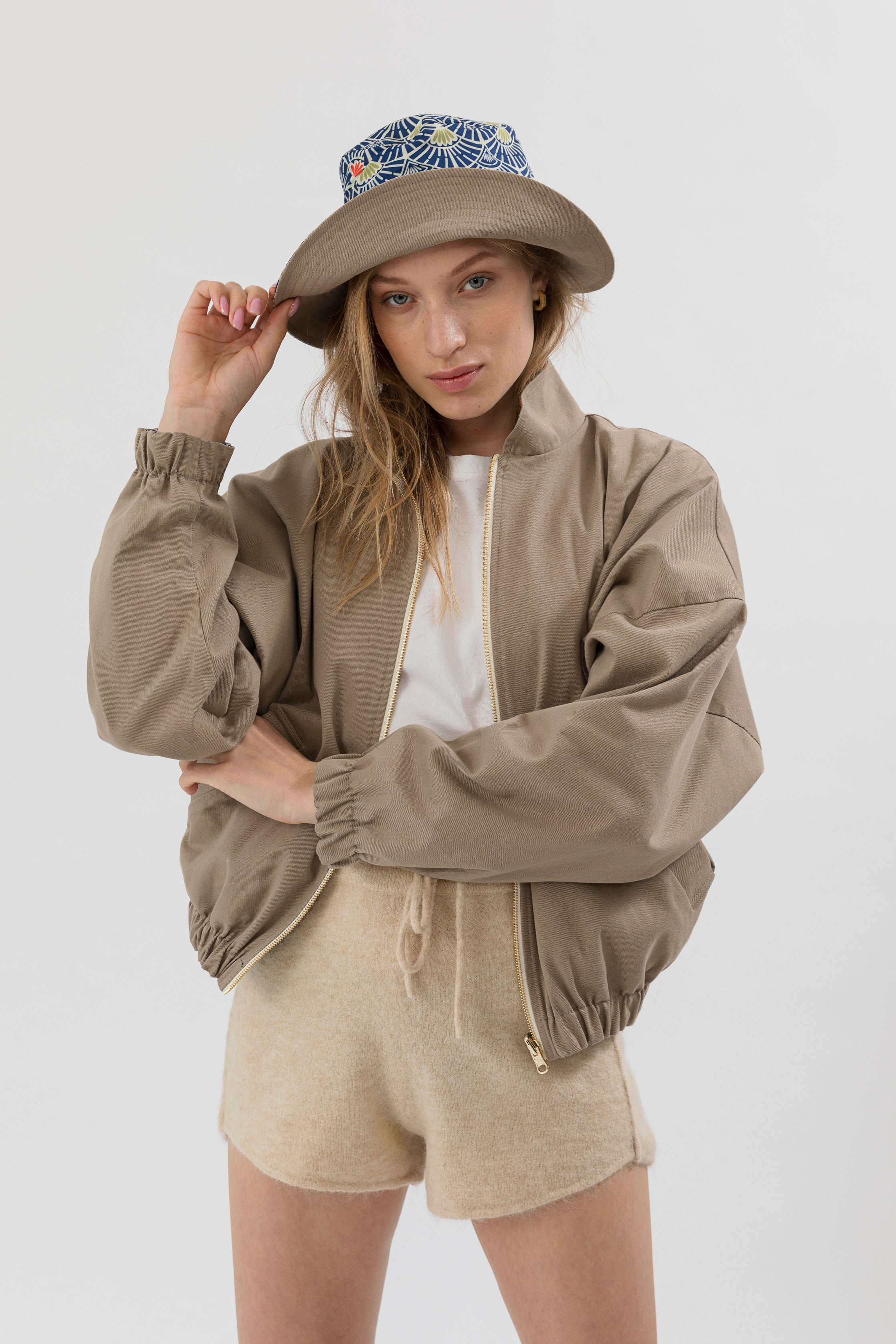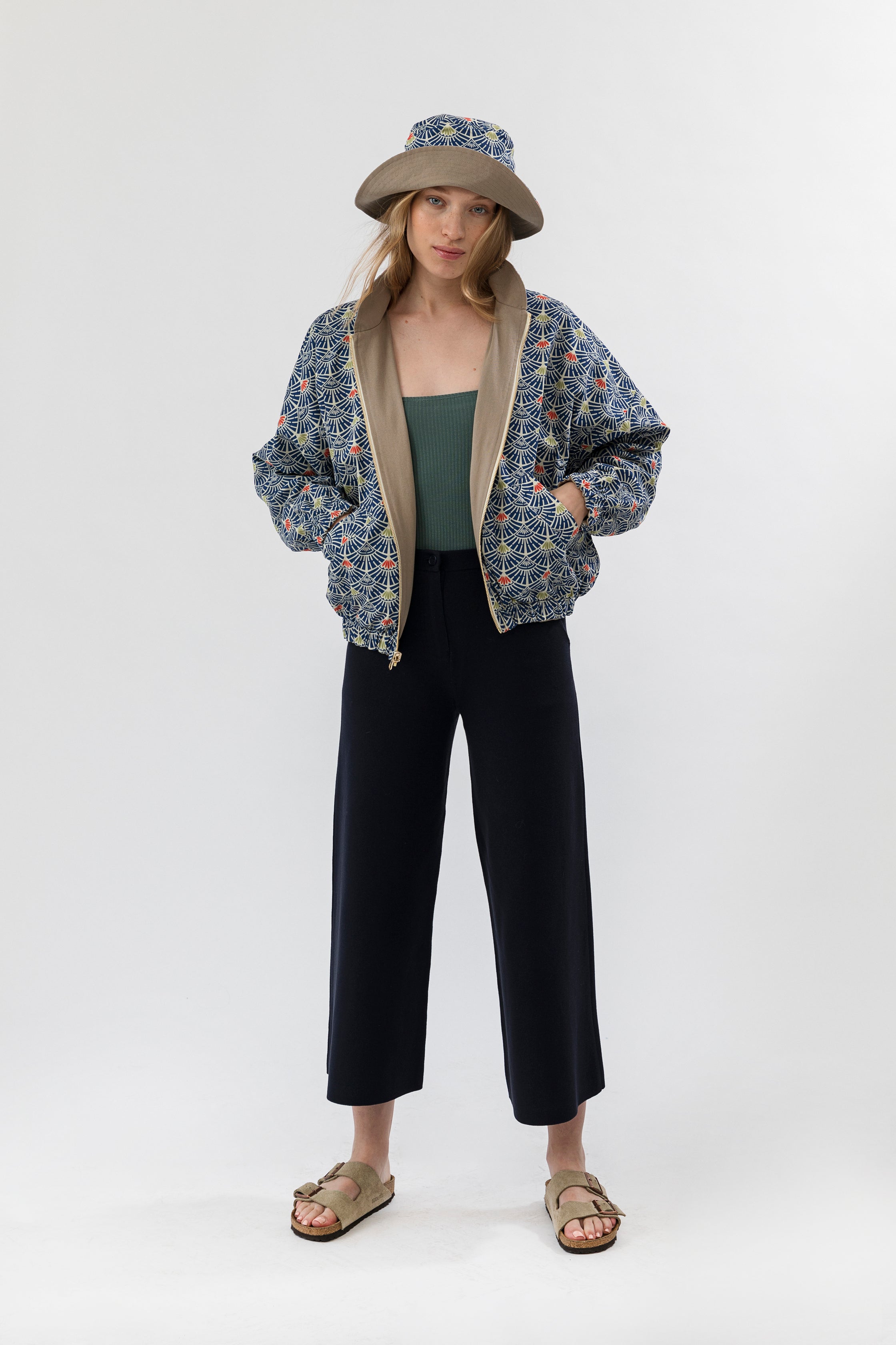 Baskılı astarlı, ters çevrilebilir pamuklu bomber ceket.