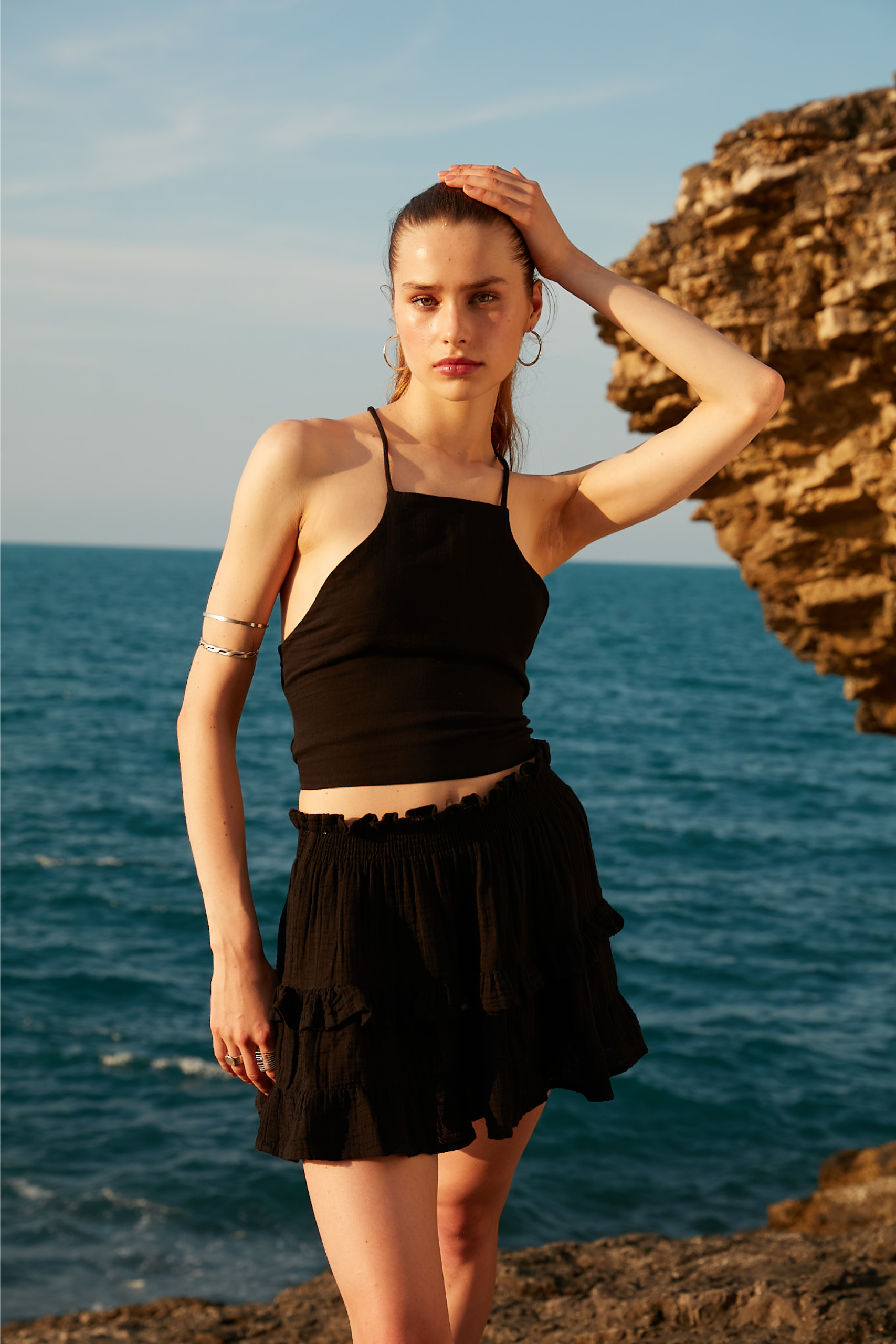 Rahat Kalıptır  Müslin Etek 100% Pamuktur. Kimyasal İçermez. Çevre Dostu Giyim. Manken Beden Ölçüleri: Boy: 180 cm Göğüs: 83 cm Bel:...