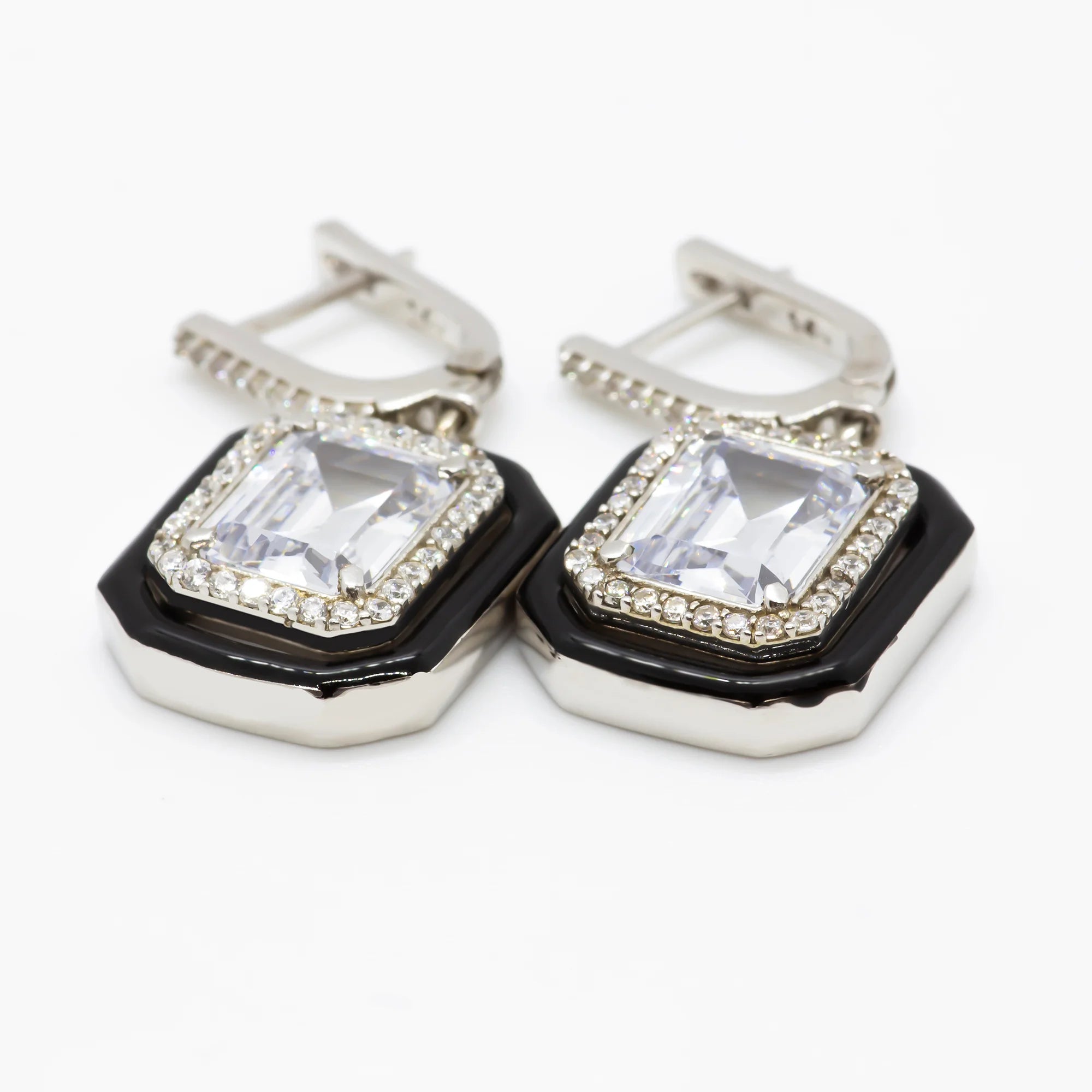925 sterling silver with rhodium plating. Detailed craftsmanship. Stones are radiant cut laboratory diamonds. Color: Yell. Handmade in  Turkey. SooSilky...