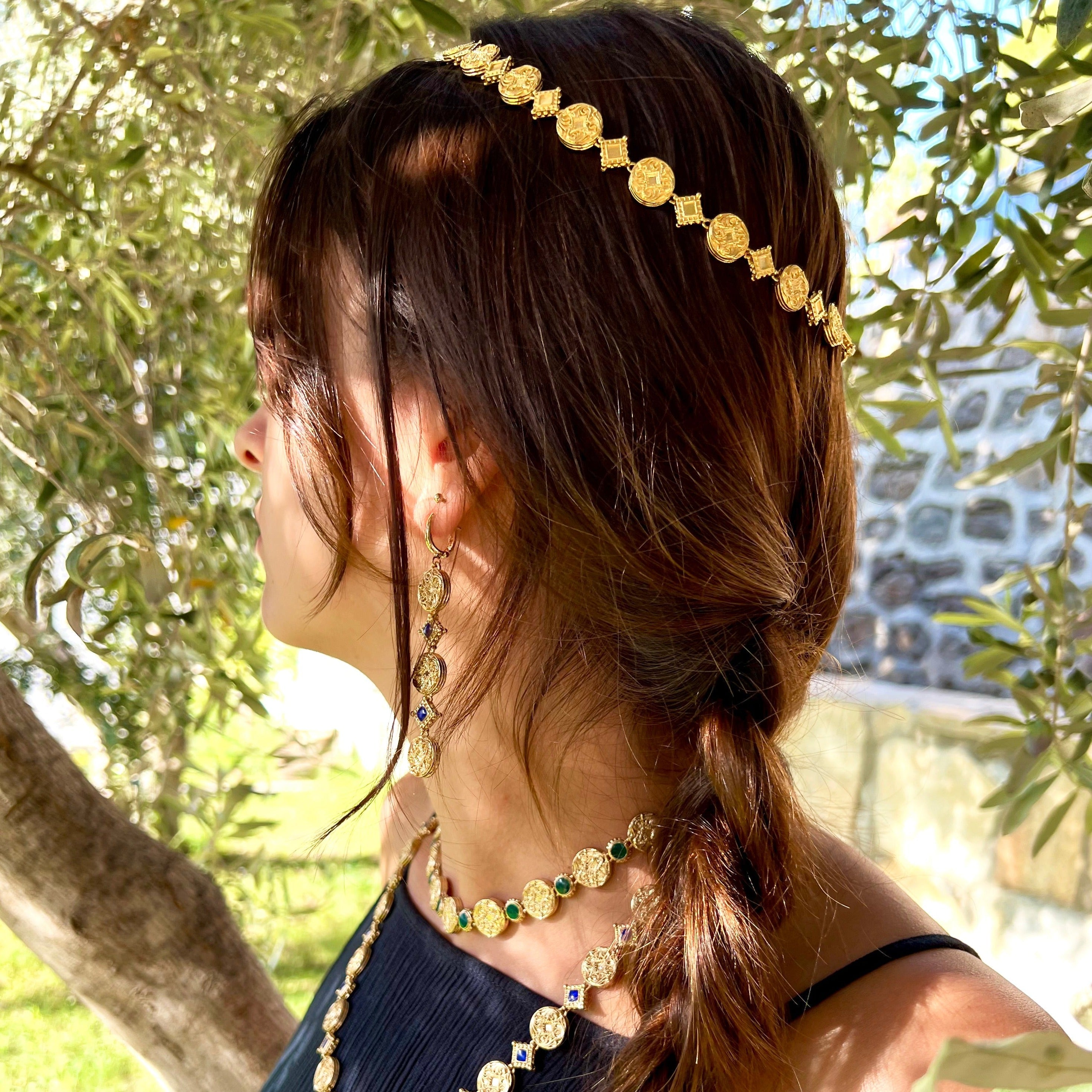Theodora Koleksiyonumuzla, İmparatoriçe Theodora'nın yılmaz ruhundan ilham alan Bizans tarihinin görkemli cazibesine adım atın. Bu koleksiyon, ona saygı göstererek tasarlanmış olup, güç ve sofistike bir tarzı yansıtmaktadır. Theodora'yı gururla takın ve sadece Bizans mirasını değil, beklentileri aşan ve tarihte silinmez bir iz bırakan bir kadının ruhunu da kucaklayın.