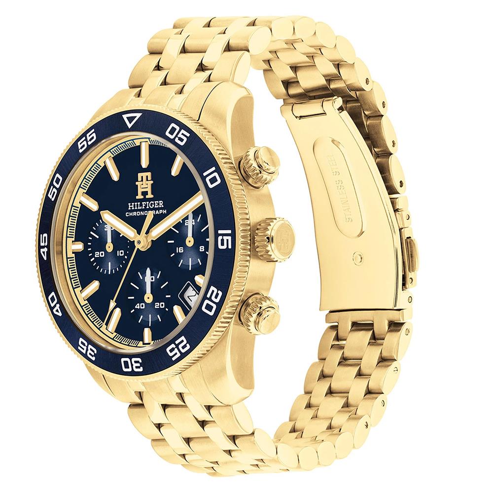 Kasa Çapı: 41 mm - Kasa Şekli: Yuvarlak - Kasa Materyali: Çelik - Kasa Rengi: Altın Rengi - Kordon Materyali: Çelik - Kordon Rengi: Altın Rengi- Kadran Rengi: Lacivert - Kadran Işığı: Yok - Taş: Yok - Çalışma Şekli: Analog - Teknolojisi: Quartz - Takvim: Var - Kronometre: Var - Alarm: Yok - Cam Özelliği: Mineral - Özellik: - Su Geçirmezlik: 5 ATM - Garanti Süresi: 2 YIL - Cinsiyet: Erkek