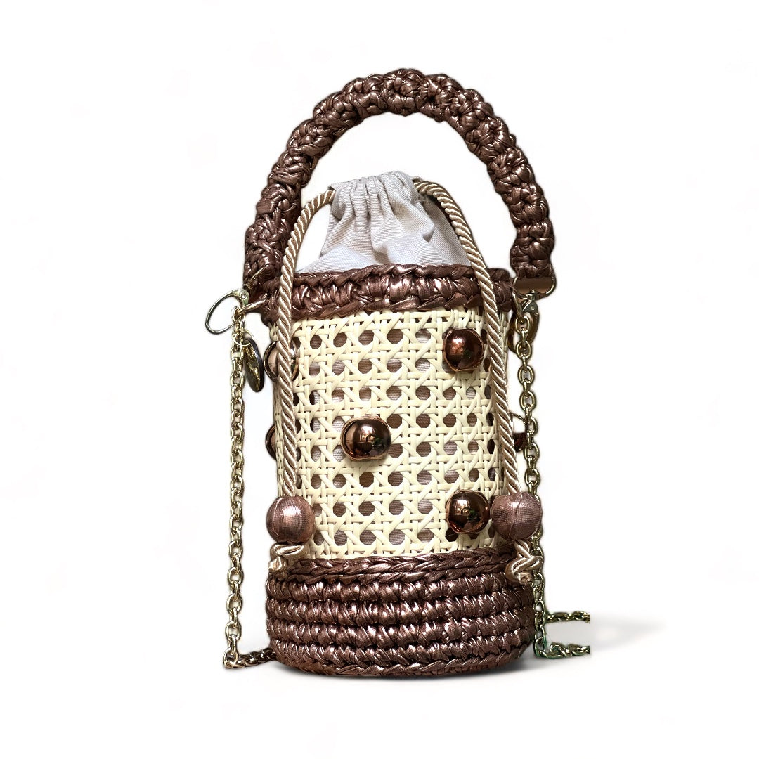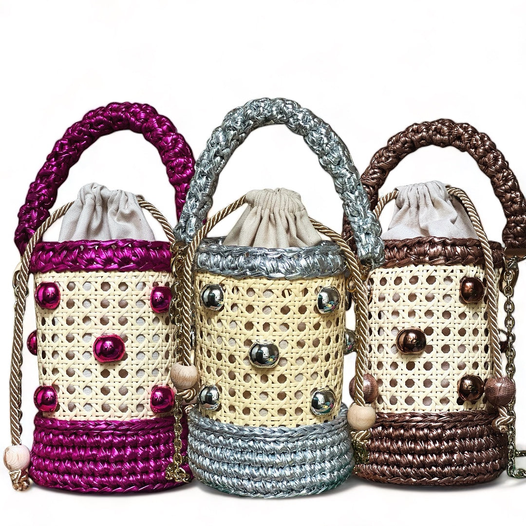 • Made with natural cane and metallic yarn.