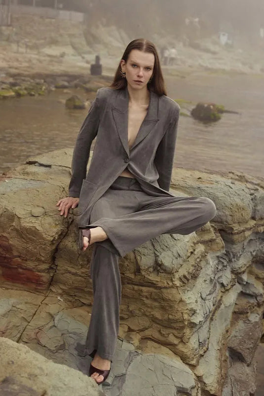 Bambu liflerinden yapılmış liyosel ve viskon karışımı pantolon. İçten düğmeli fermuar kapamalı, bir pat ile gizlenmiştir. Arkada elastik bel bandı. İki yan cepli. Düz paça. Orta-yüksek bel.