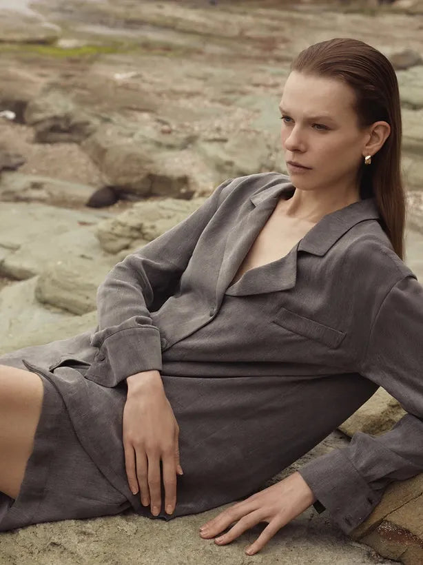 Bamboo pleated shorts. Two side pockets. Front button and zipper closure. Slightly pleated front. Mid waist shorts. Biased false front pockets.
