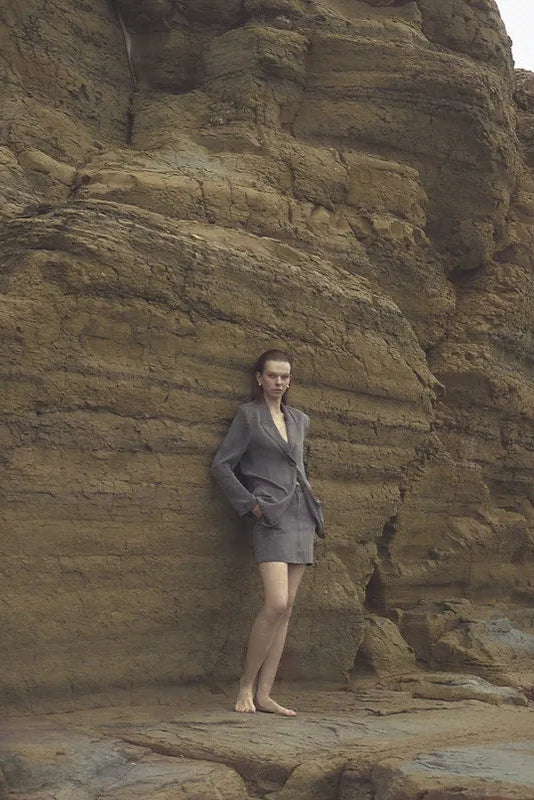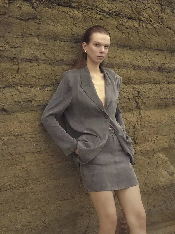 Orta-yüksek bel. İç kısmı siyah denye astarlı, ön ve arka kısmı etek görünümlü. Fermuar kapamalı, iç düğme kapaması bir pat ile gizlenmiştir. İki yan cepli. Düz kesim