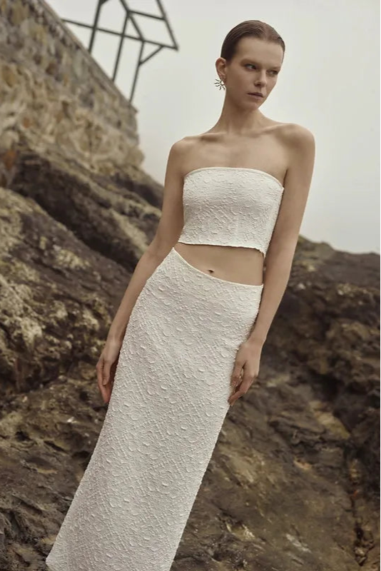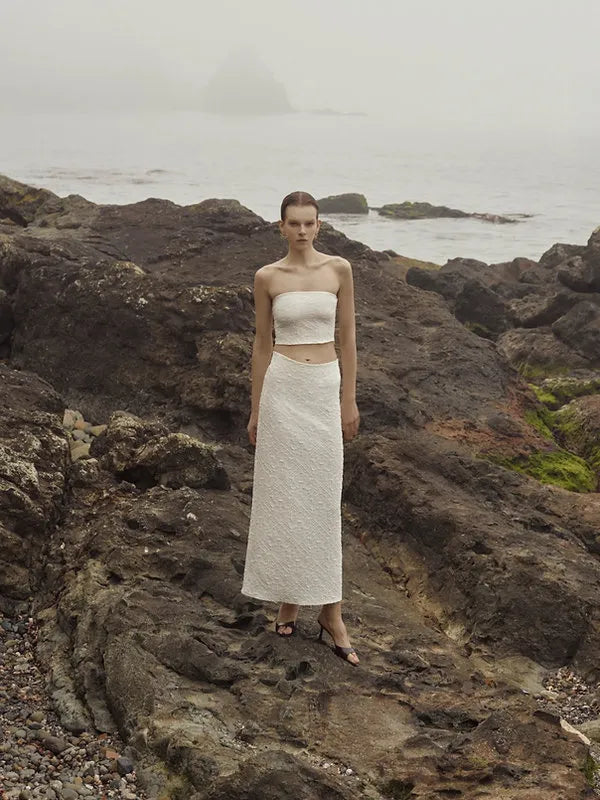 Jacquard Maxi Skirt. Back-middle slit. Back zipper. Straight cut. Medium-low waist.