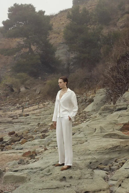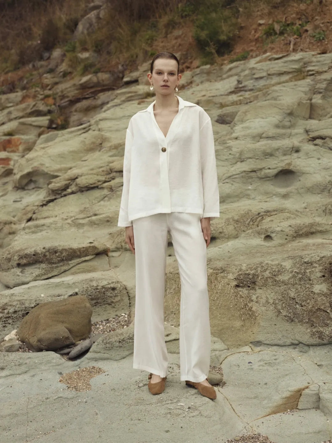 Modal karışımlı düz kesim bol pantolon. Orta bel. Beli elastiktir. Yanlarda cepleri vardır.