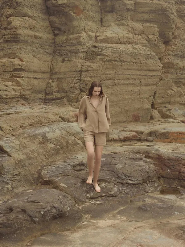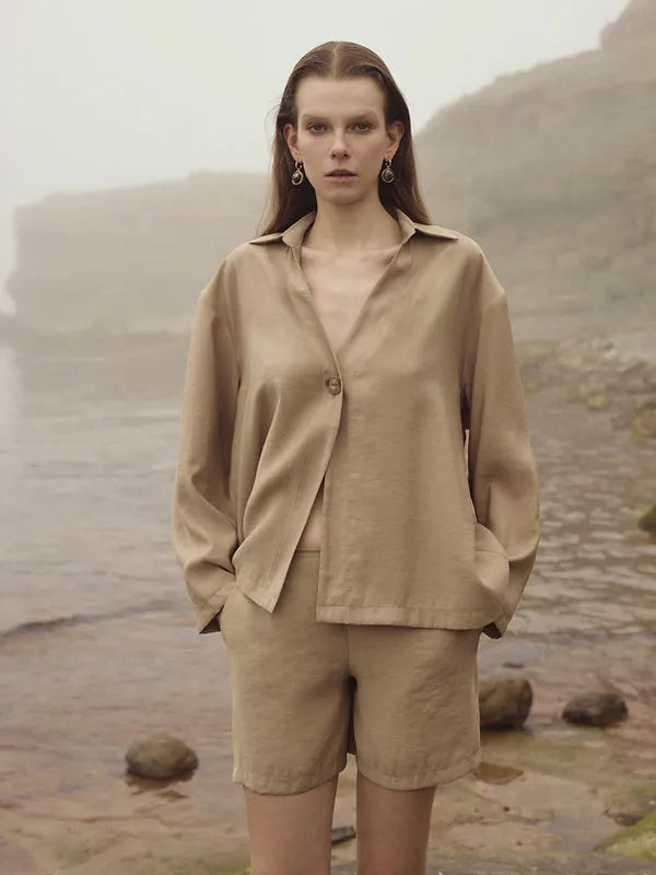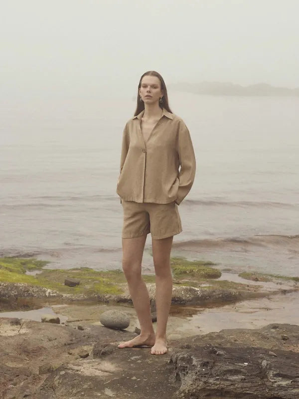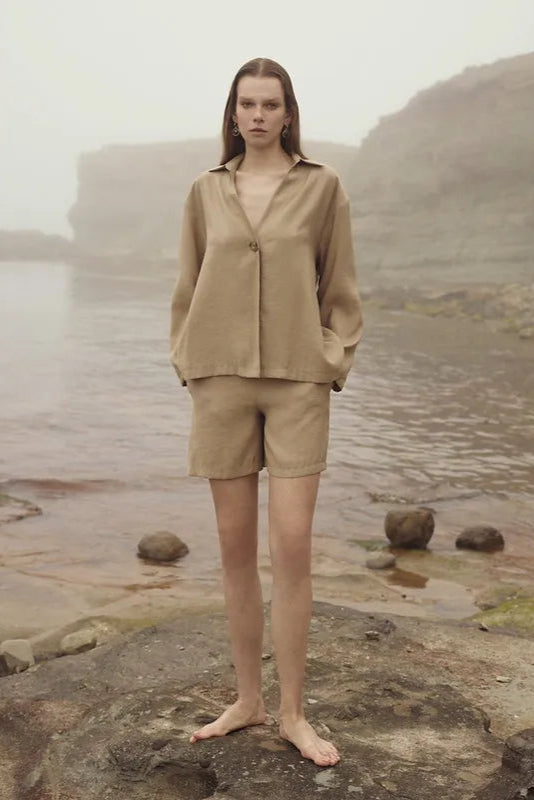 Modal karışımlı şort. Orta bel. Beli elastiktir. Yan cepli.