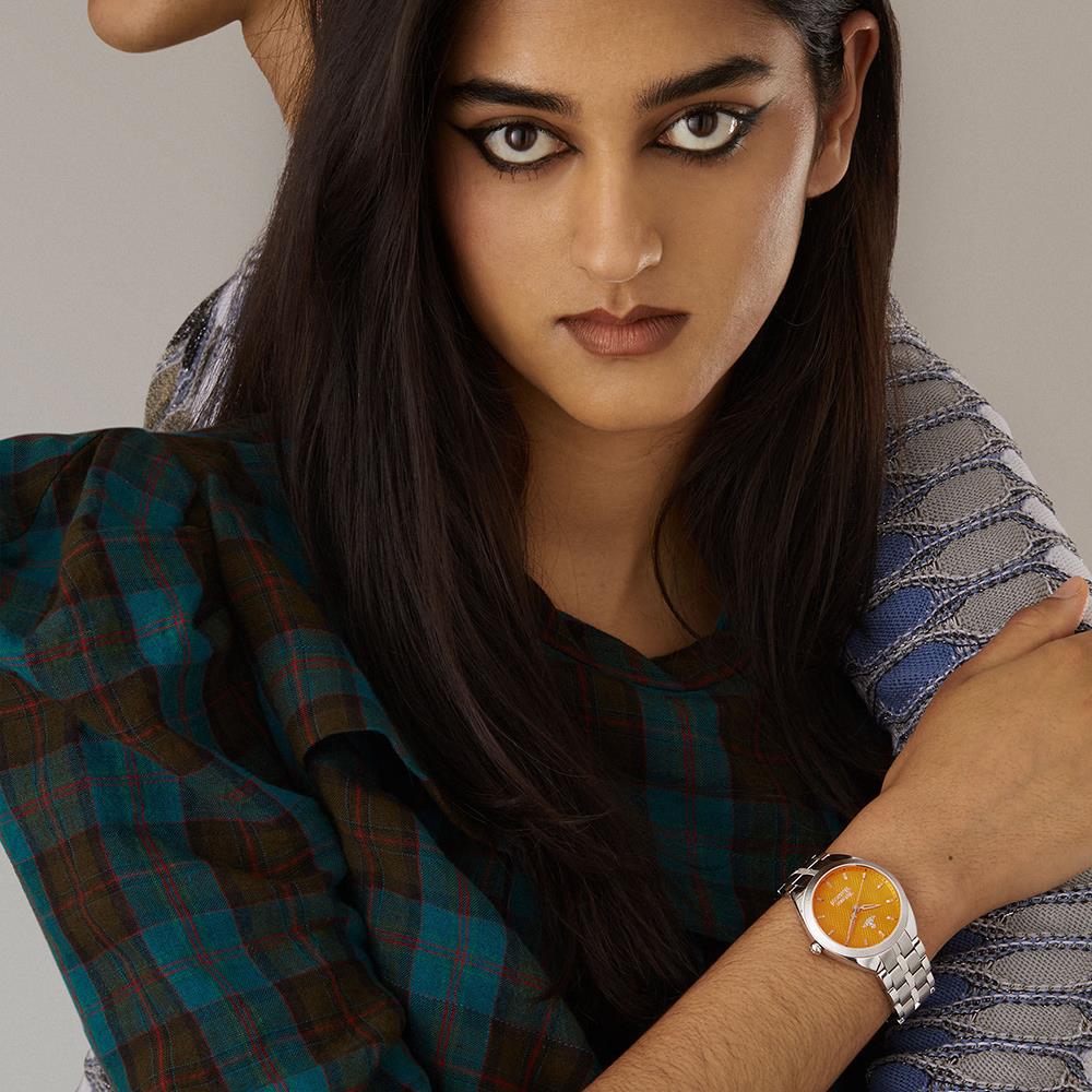 Kasa Çapı: 37 mm - Kasa Şekli: Yuvarlak - Kasa Materyali: Çelik - Kasa Rengi: Gümüş - Kordon Materyali: Çelik - Kordon Rengi: Gümüş- Kadran Rengi: Turuncu - Kadran Işığı: Yok - Taş: Yok - Çalışma Şekli: Analog - Teknolojisi: Swiss Quartz - Takvim: Yok - Kronometre: Yok - Alarm: Yok - Cam Özelliği: Mineral - Özellik: - Su Geçirmezlik: 5 ATM - Garanti Süresi: 2 Yıl - Cinsiyet: Kadın