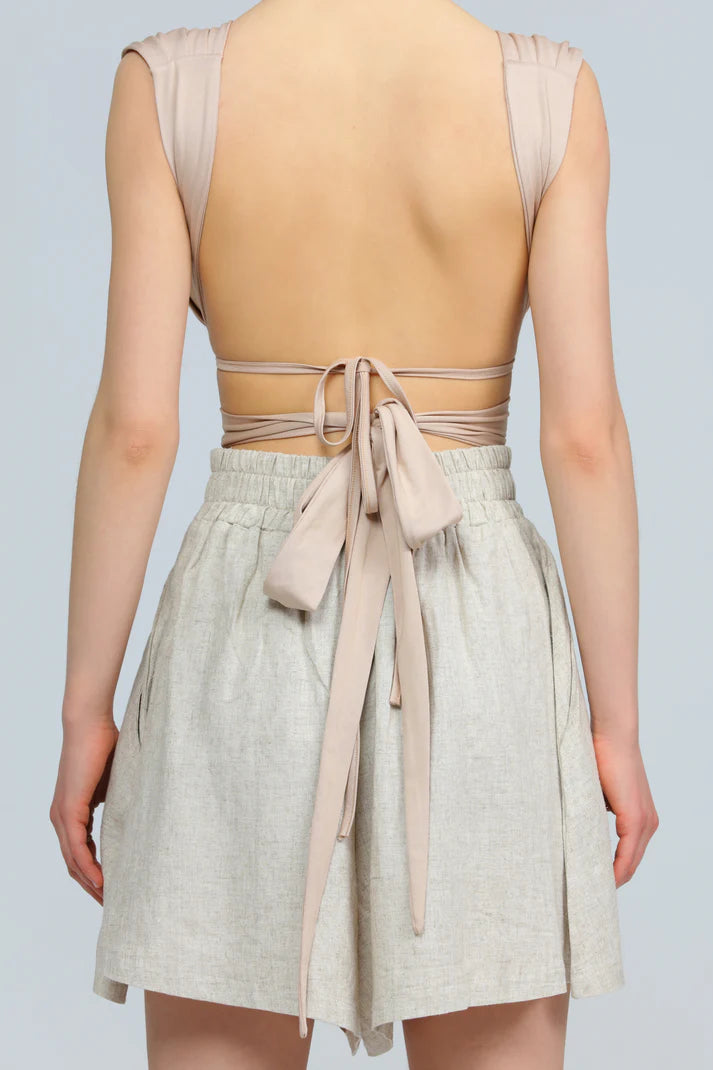 With its elegant gather detail on the front, light stripe design and short cut that hugs the waist, this top combines the best features of a bra and a crop top. Thanks to its special active fabric, this piece adapts to every moment and bears the signature of WTP with its four-way stretch structure and breathable texture.