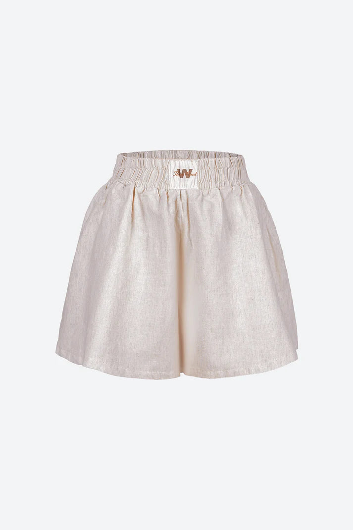 Made from a linen and viscose blended woven fabric, these shorts are designed to add lightness and comfort to your summer style. While the elasticated waist and high-waisted structure offer a comfortable wearing experience, the woven label detail on the belt adds a stylish touch to the shorts. Thanks to its loose and flowing cut, it allows you to move freely all day long.