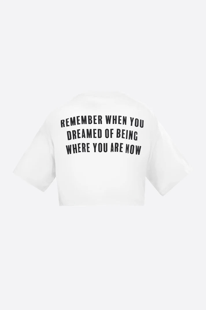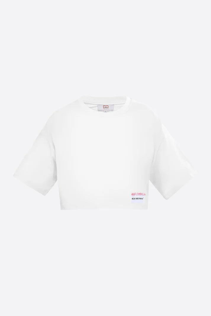 With its woven label on the front and pigment print detail on the back, this t-shirt adds a unique touch to your daily style. It emphasizes comfort with its low-shoulder and loose cut, while offering a comfortable experience with its 100% cotton fabric.