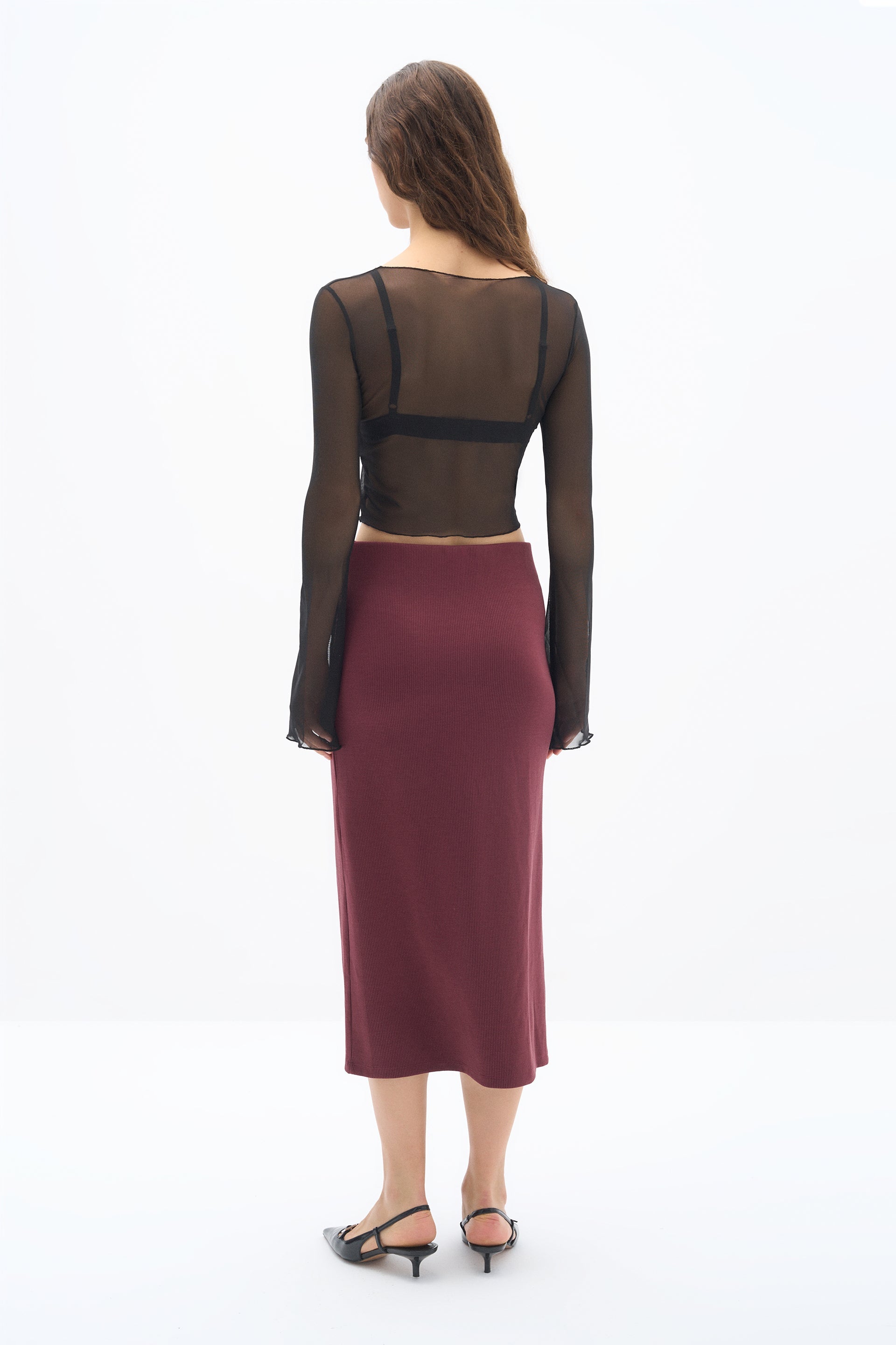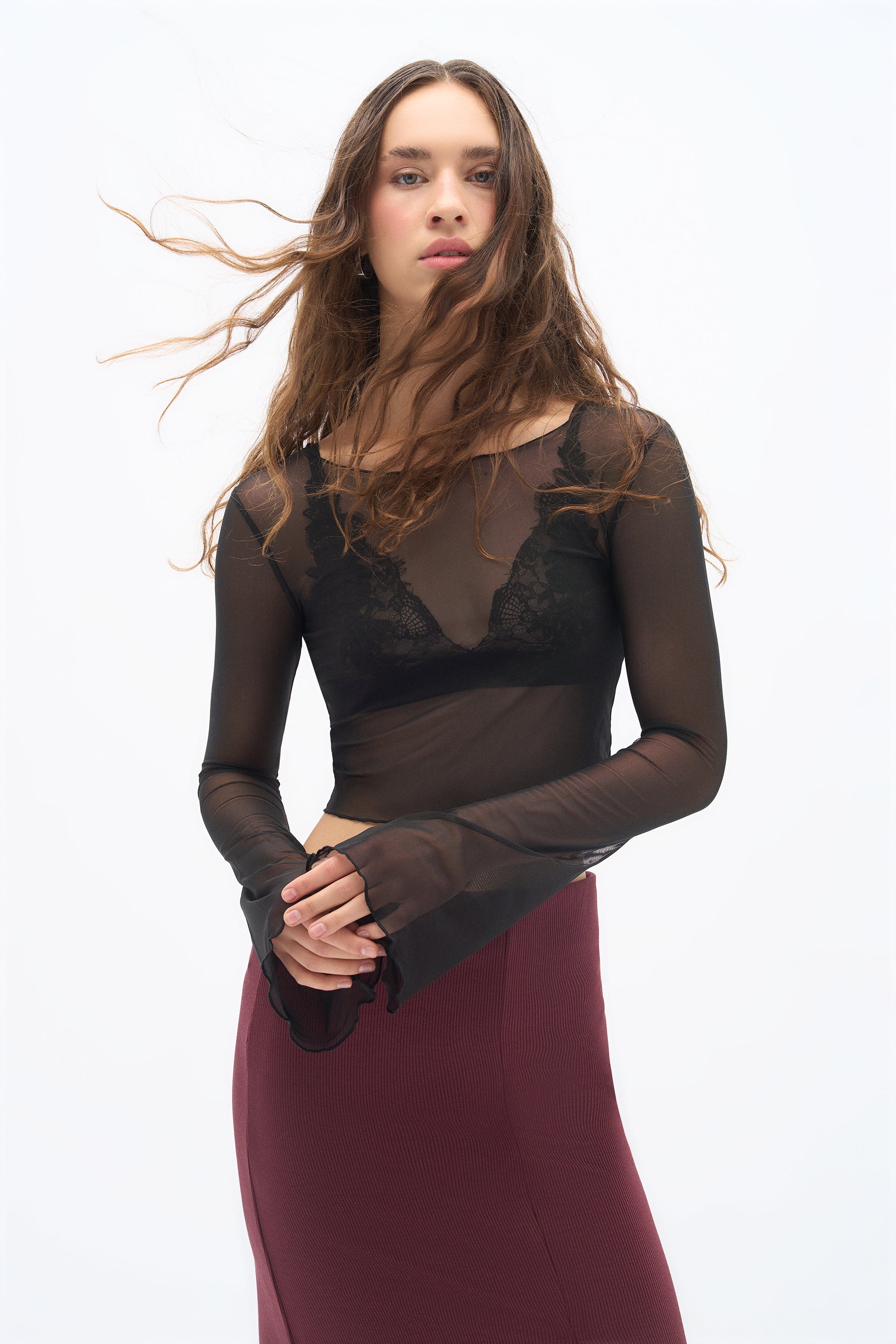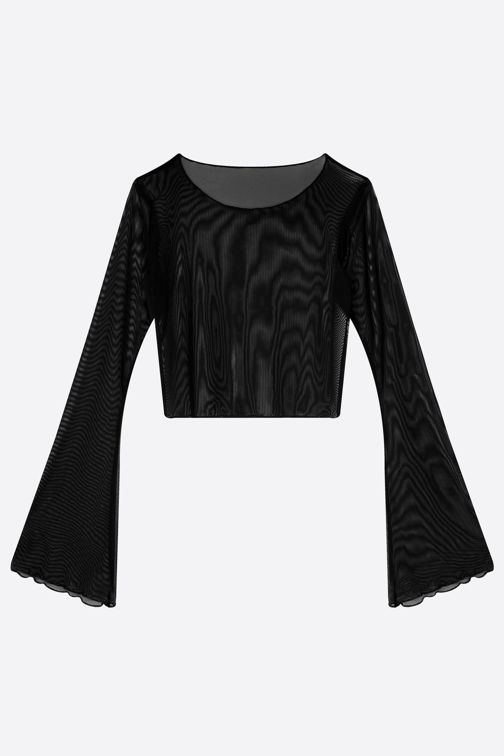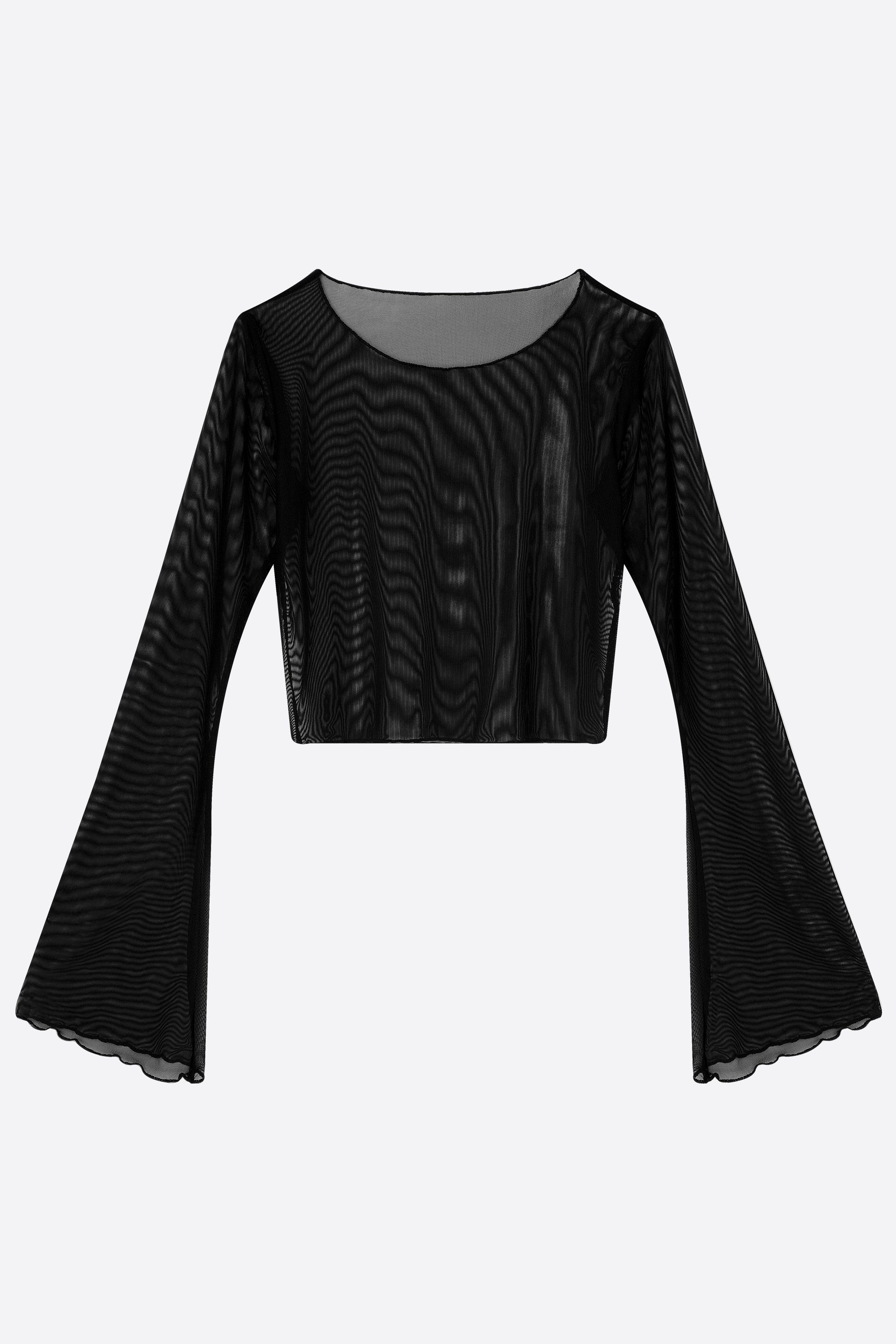Geniş yaka ve geniş kollu tasarımıyla bu tül gövde, mistik bir hava katlarken hafif ve şeffaf yapısıyla zarif bir şıklık sunuyor. Esnek ve şeffaf tül kumaşı sayesinde vücudu sararak, feminen gücünüzü yumuşak bir şekilde muhafaza etmenizi sağlar.